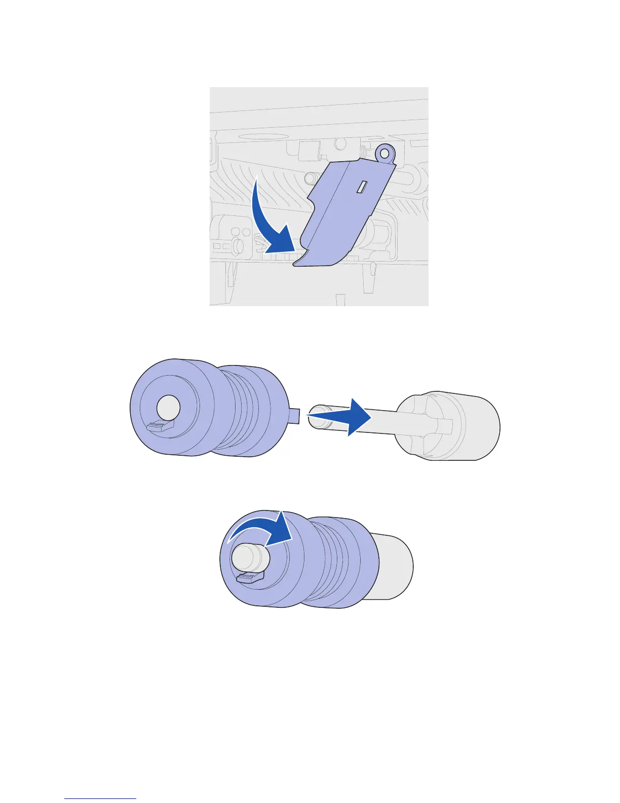 4 Repeat the instructions for step 3 to install the top right pick roller.