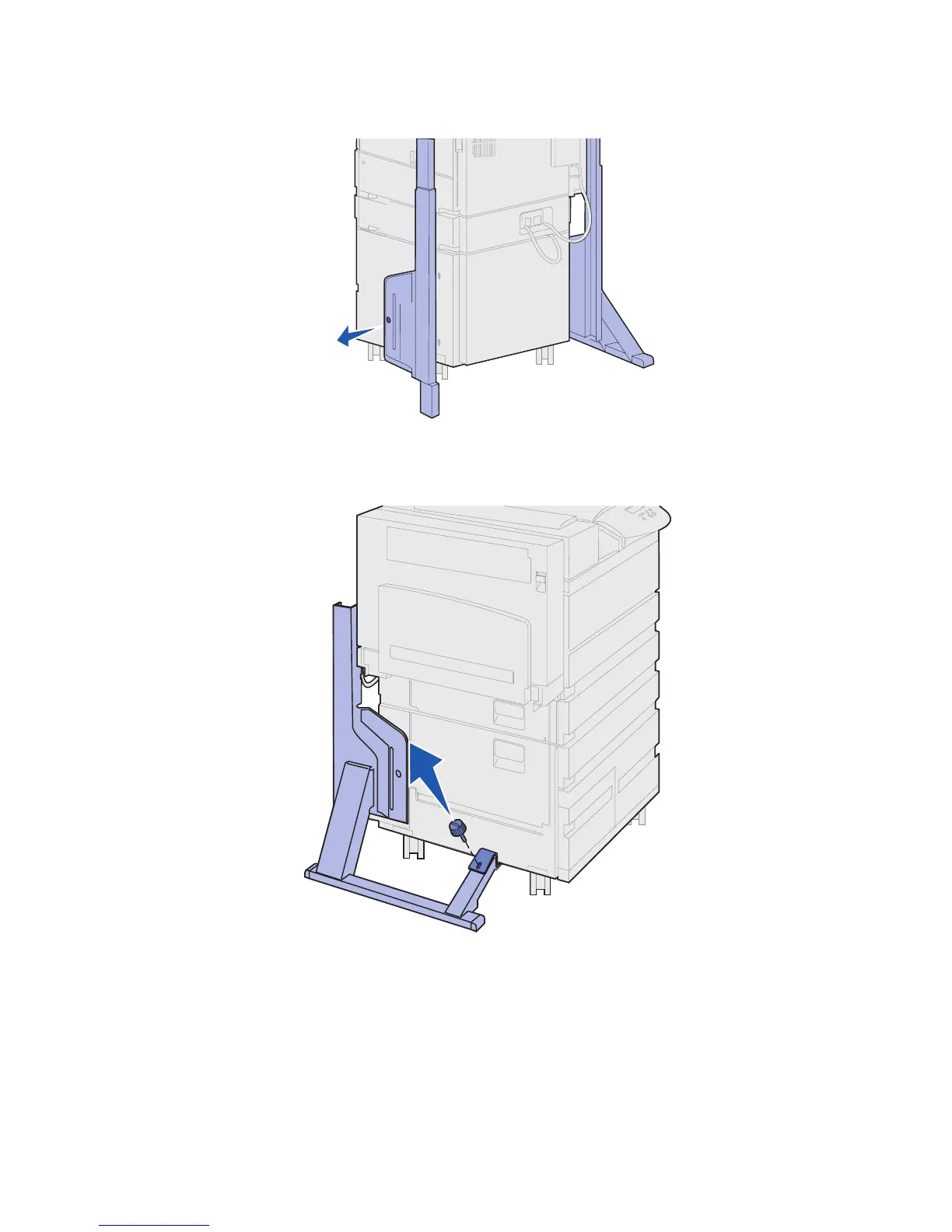 5 Lift up on the right side stand piece, and then pull it off of the printer.