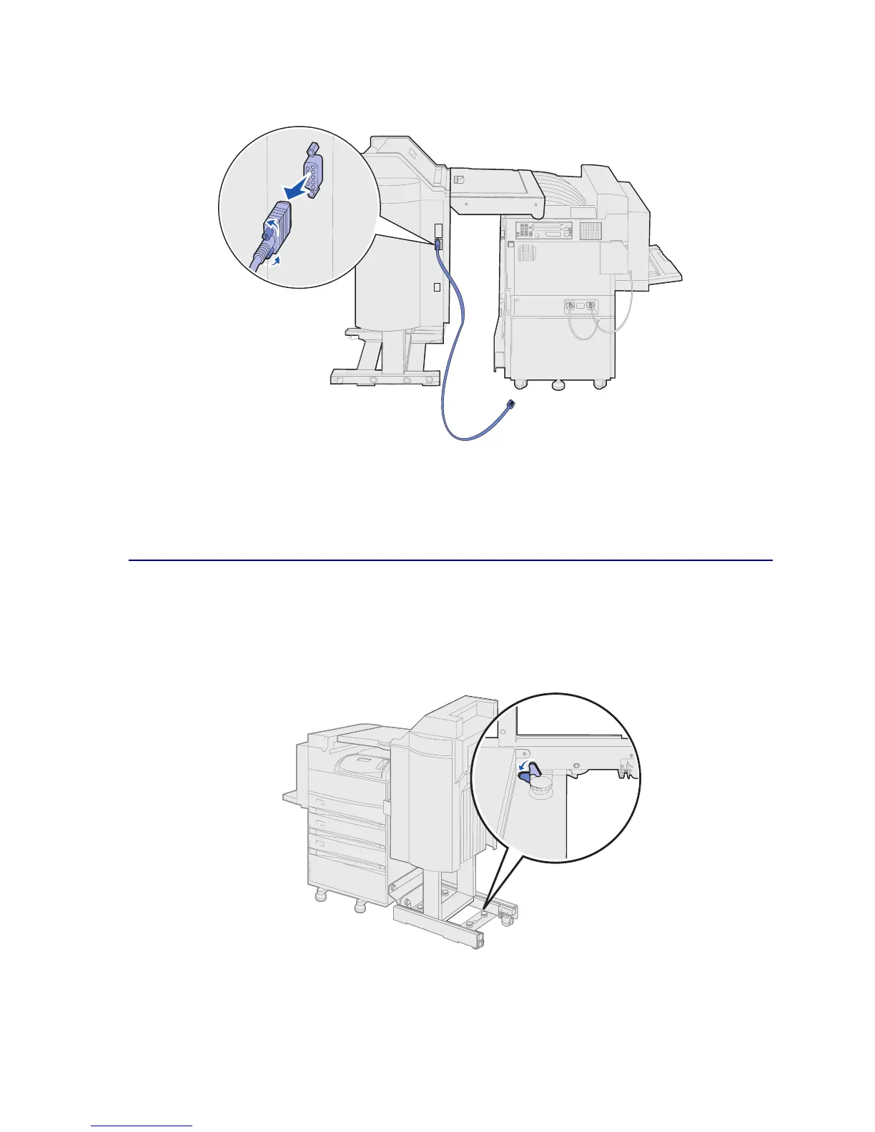 11 Locate the other end of this cable in the middle connector on the back of the finisher.