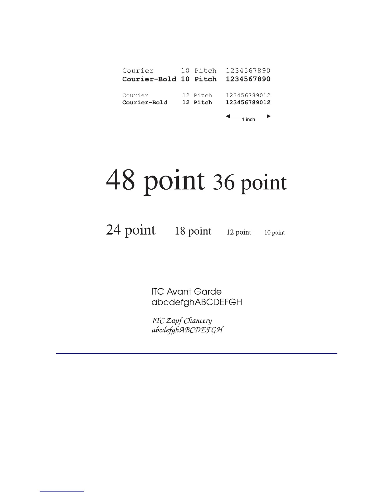 For example, all 10-pitch fonts print 10 characters per inch (cpi) and all 12-pitch fonts print 12 cpi: