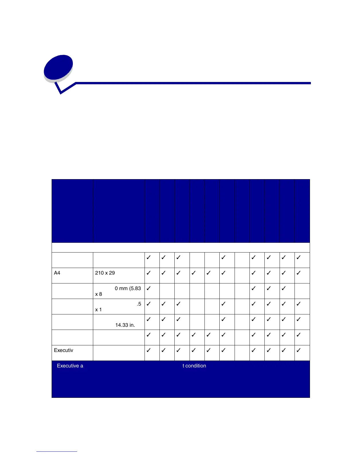Executive and Legal are supported under factory default conditions. For JIS B4 or JIS B5, see Sensing special