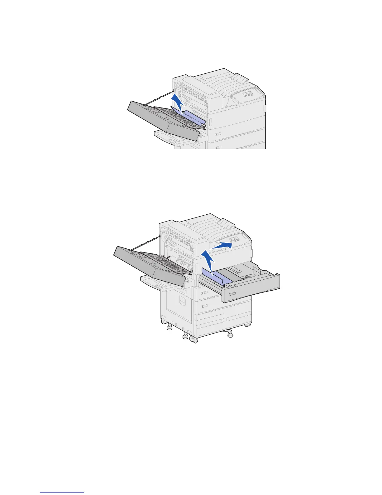 – If the paper is not visible in the tray, the paper is lodged behind the tray and requires that
