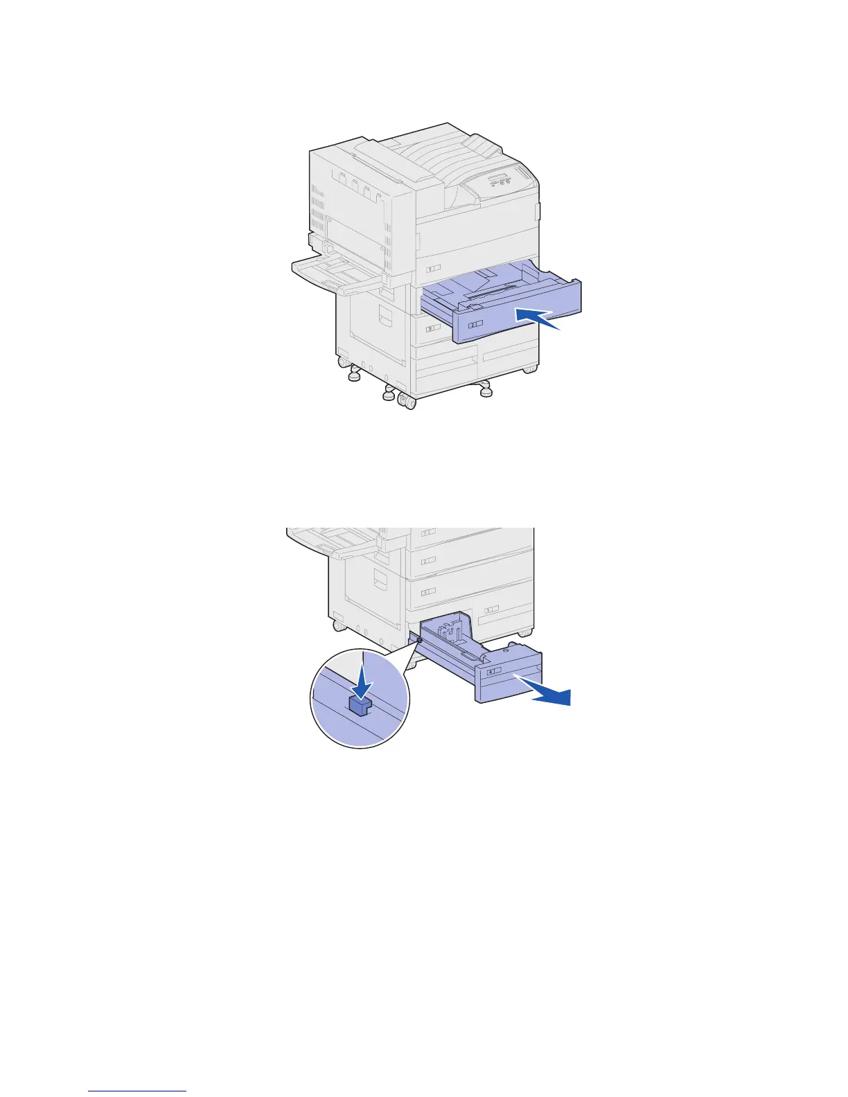 6 Align the guides on the bottom of the tray with the tracks in the printer.