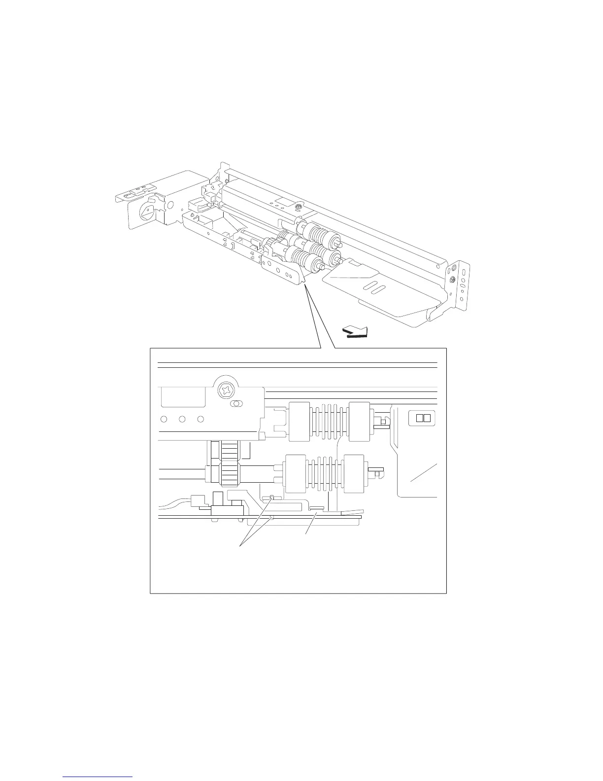 1. Remove the media feed unit assembly. See “2X 500-sheet drawer (2TM)—media feed unit assembly