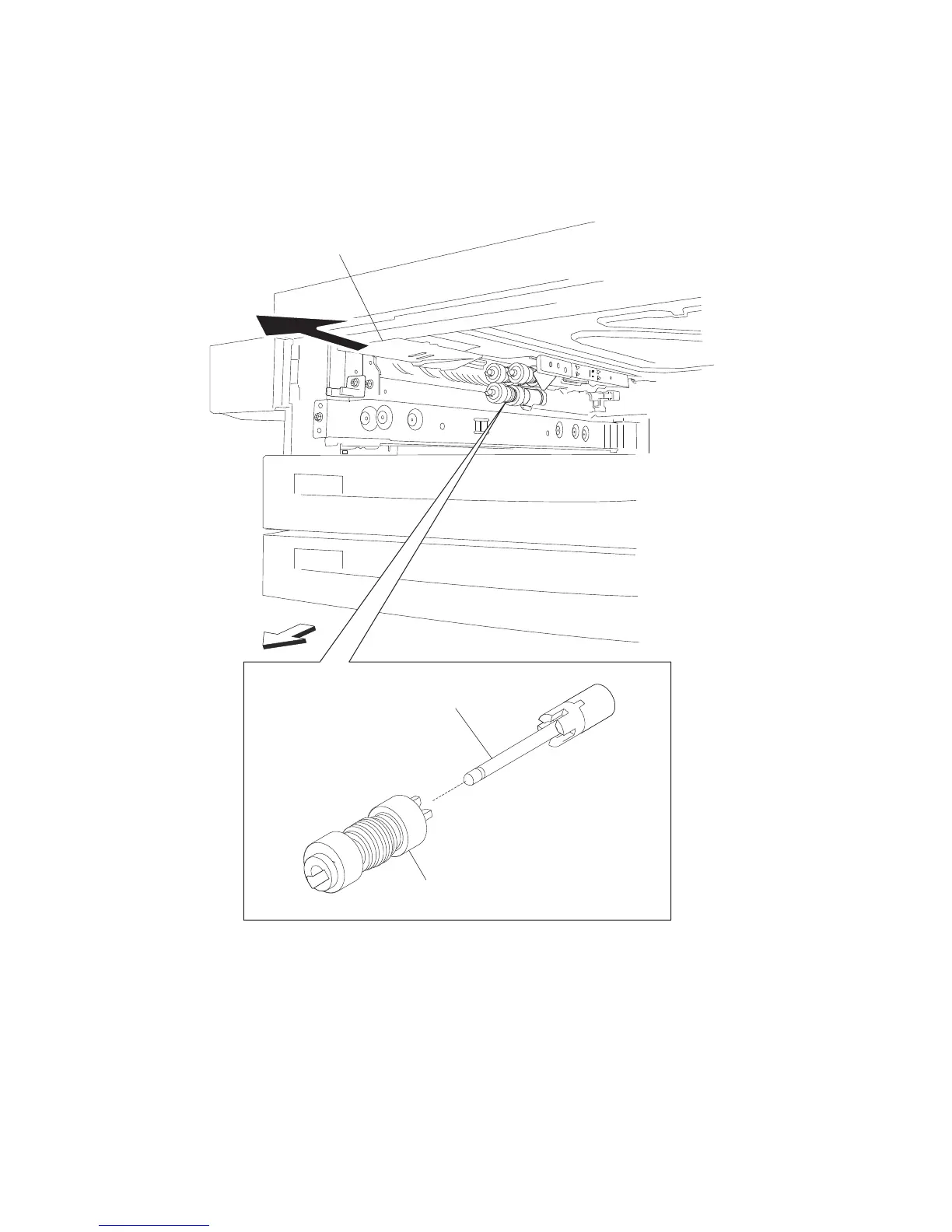 3. Release the hook securing the separation roll (B) to the shaft (C).