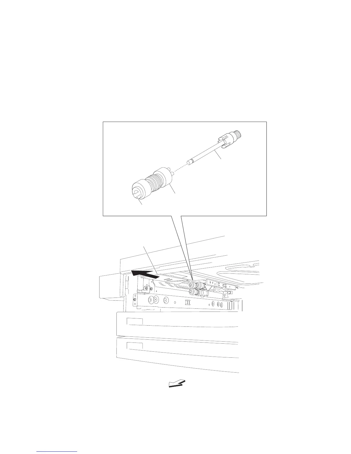 Note: Before re-installing, do not touch the rubber surface of the feed roll (B).