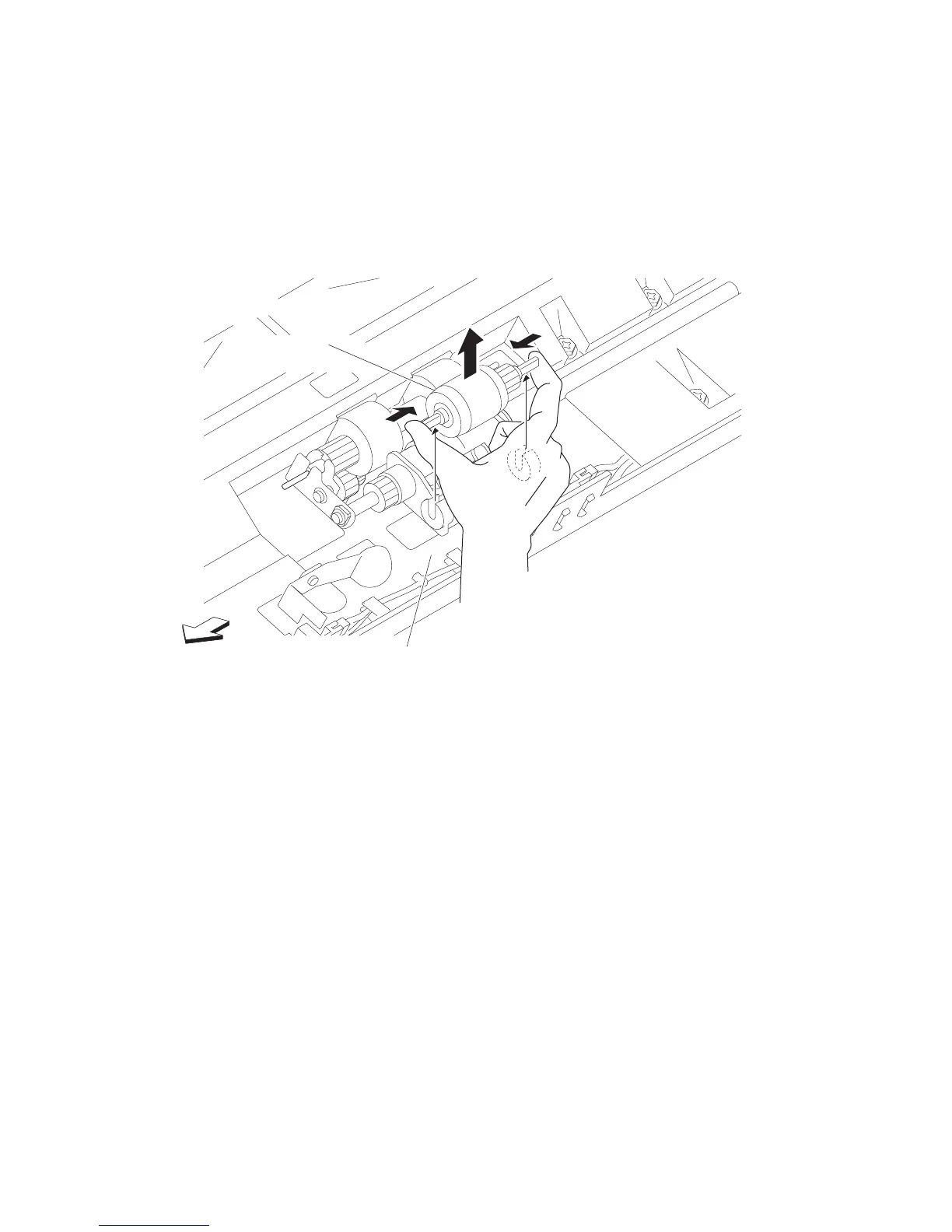 3. Push the two ends of the HCF pick roll assembly (A) inward, and move it upward in the direction of the