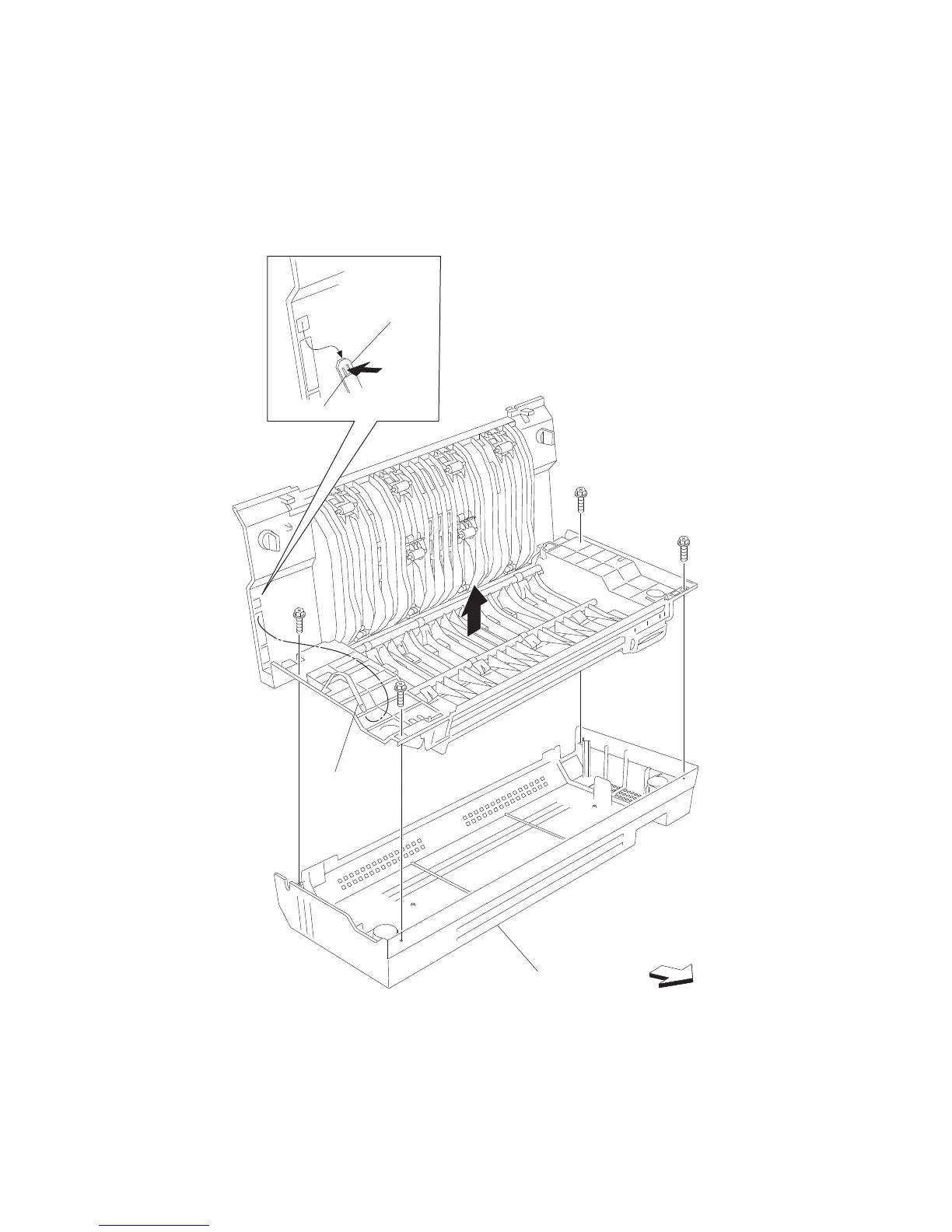 6. Remove the four screws securing the duplex left cover (C) to the duplex unit assembly.
