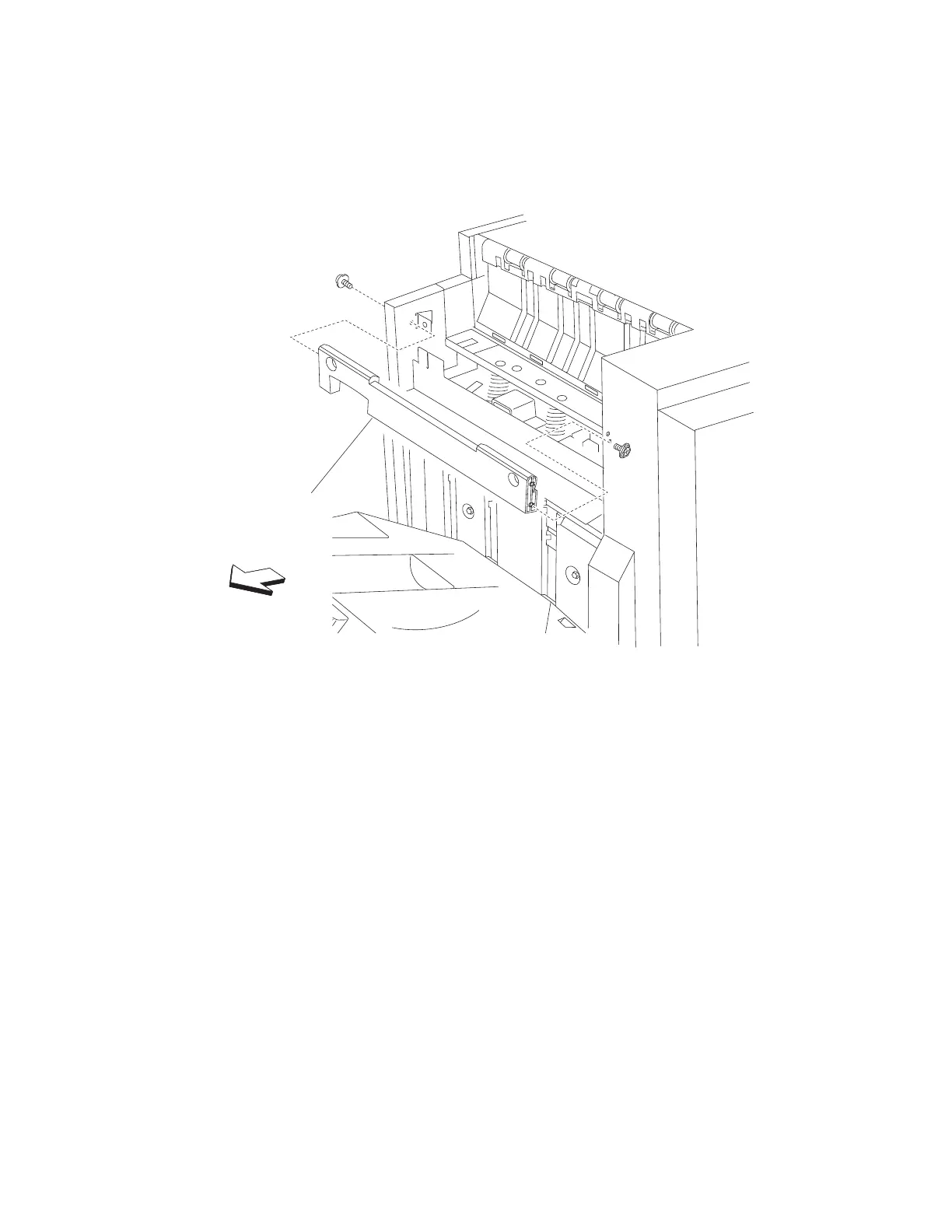 1. Remove the finisher front door assembly. See “Finisher front door assembly removal” on page 4-27.