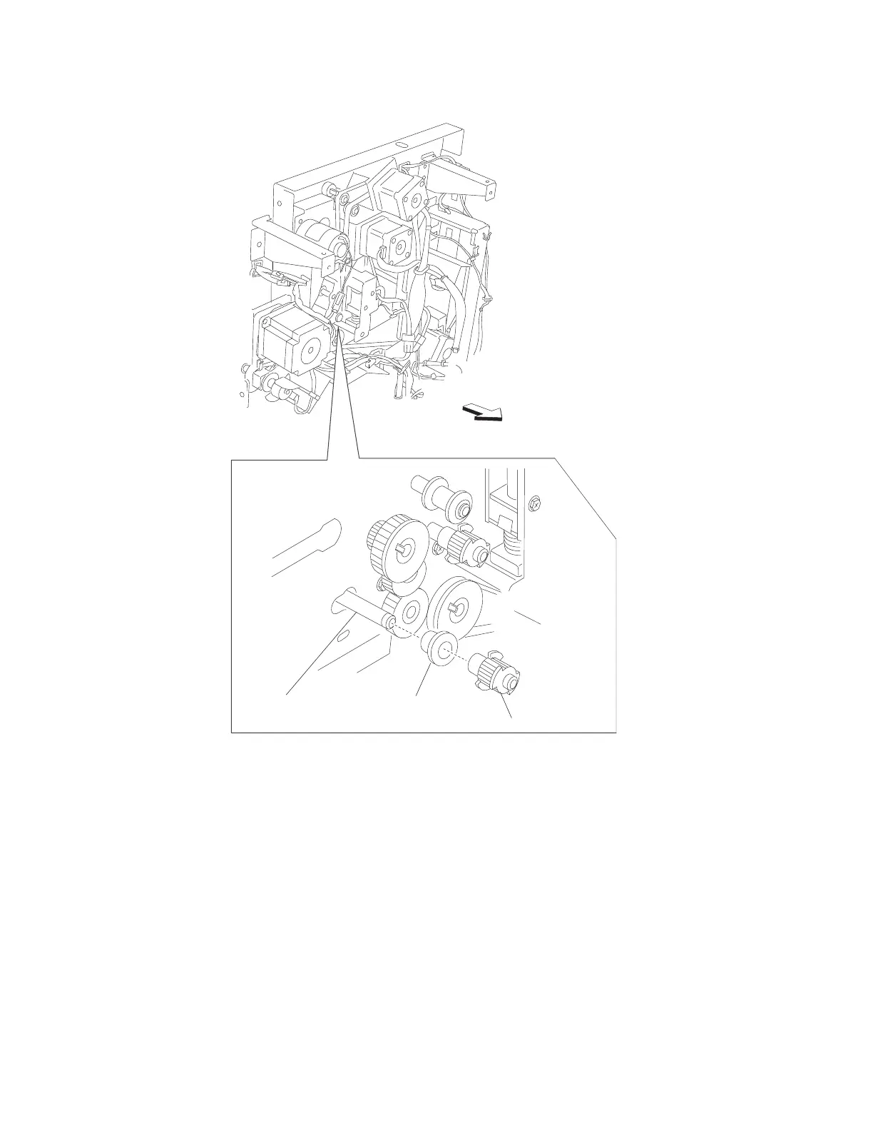 17. Remove the e-clip on the front of the finisher with a prying tool securing the lower media exit roll assembly