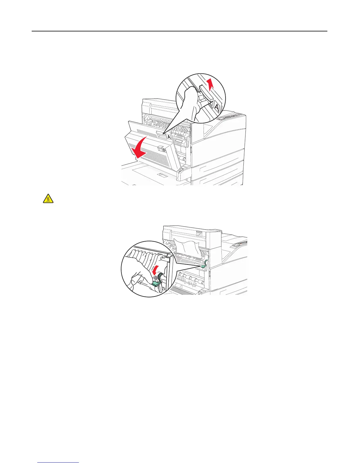 CAUTION—HOT SURFACE: The inside of the printer might be hot. To reduce the risk of injury from a hot
