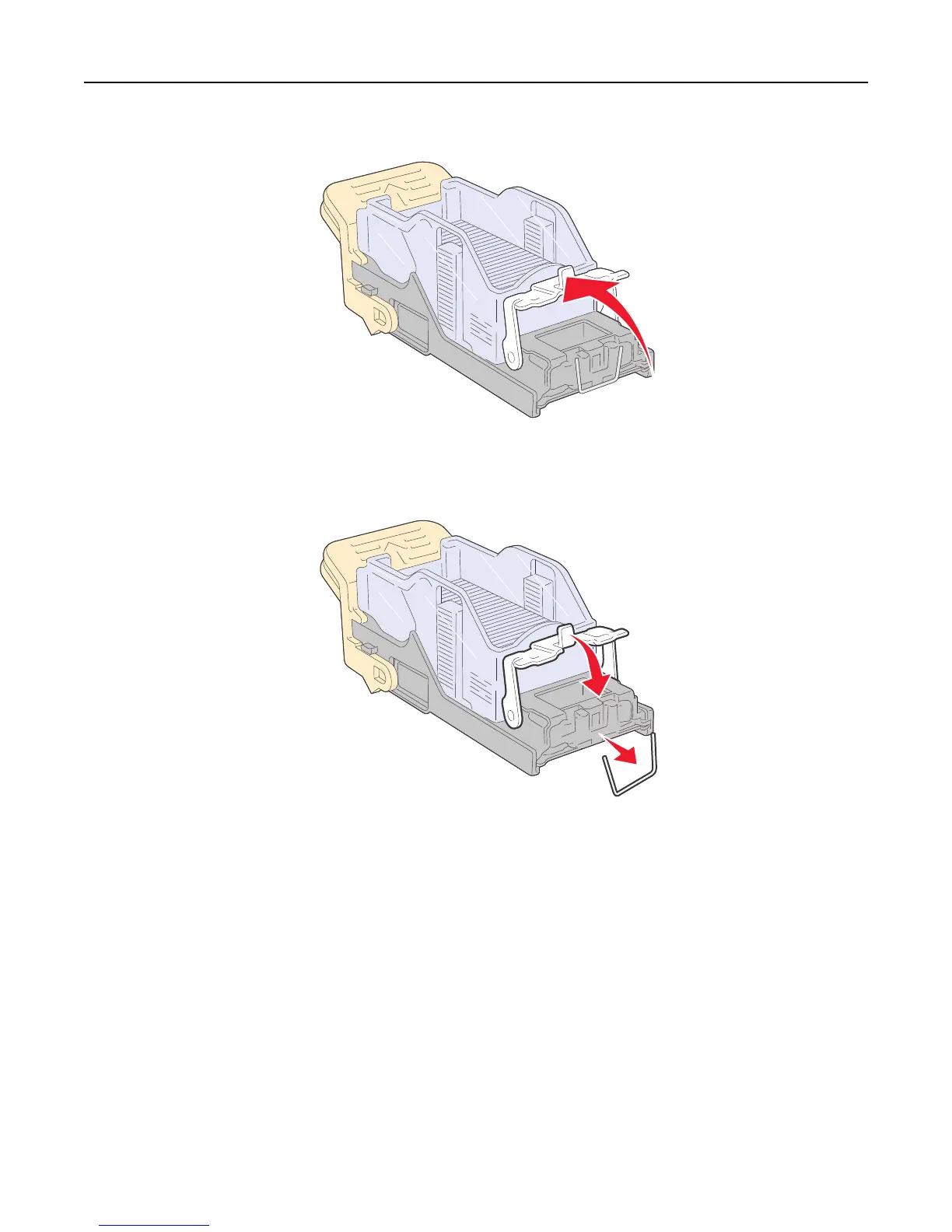 5 Look through the clear covering on the bottom of the cartridge holder to make sure no staples are jammed at the
