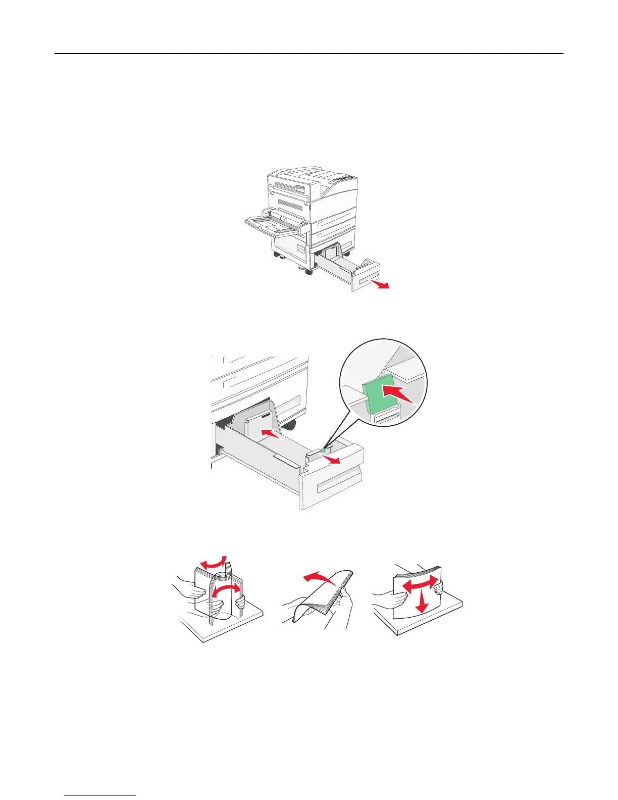 3 Flex the sheets back and forth to loosen them, and then fan them. Do not fold or crease the paper. Straighten the