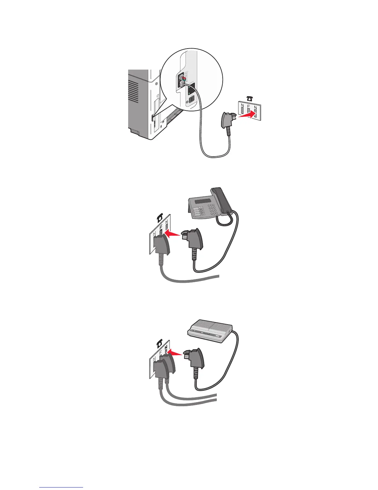 4 If you would like to use the same line for both fax and telephone communication, then connect a second telephone