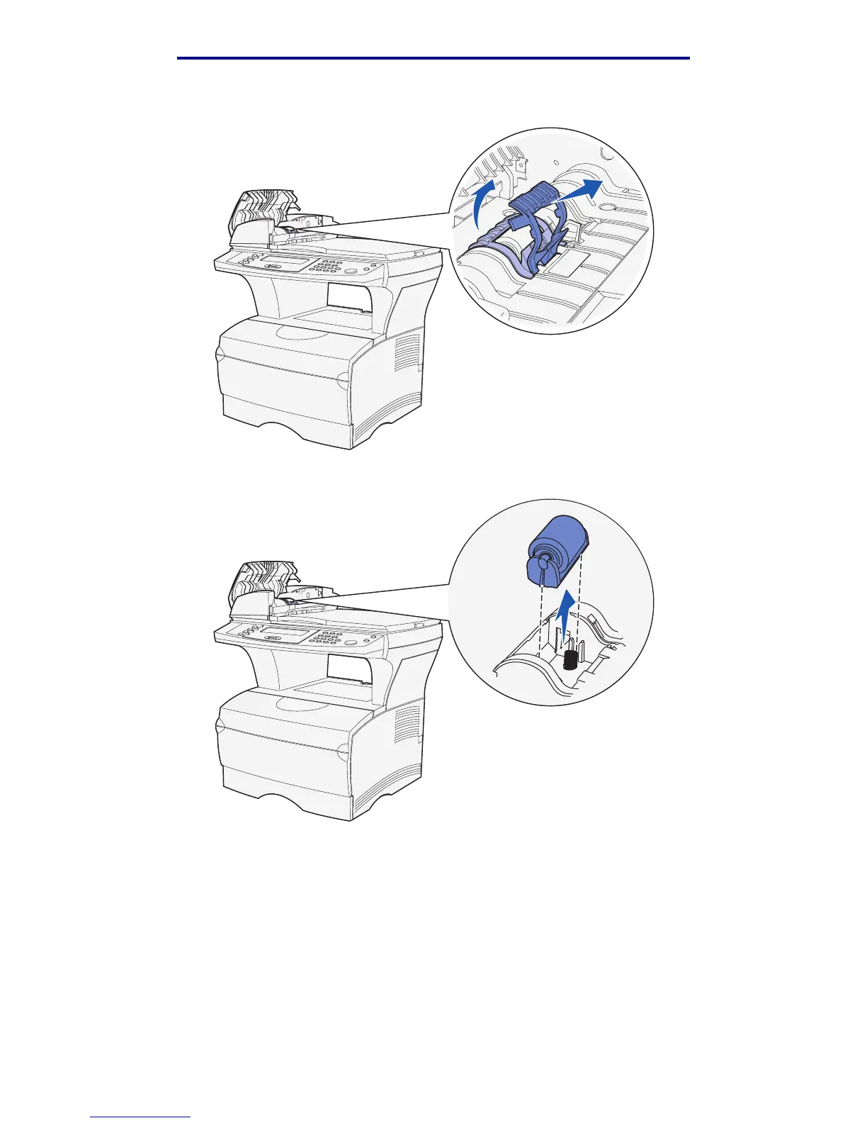 8 Lift the used separator pick roller straight up and out. Dispose of it properly.
