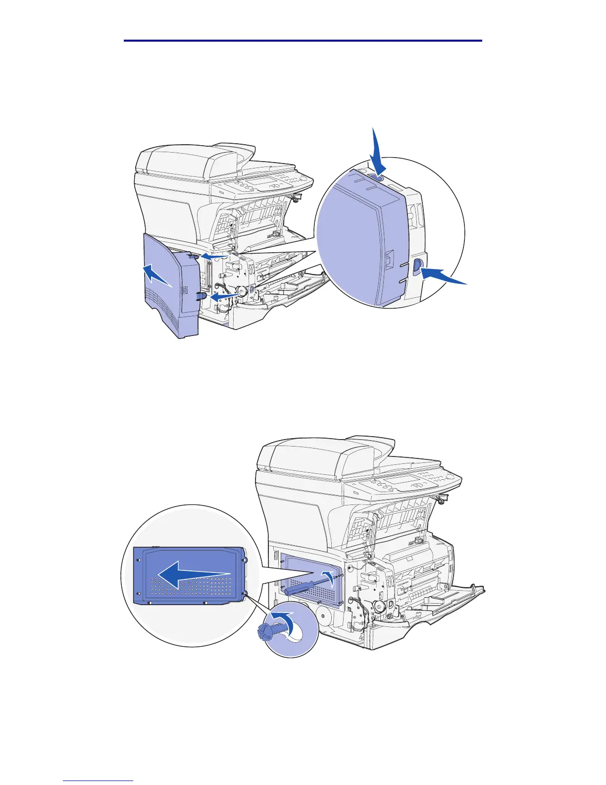 5 Swing the side door away from the MFP, and then slide the door toward the back of the MFP