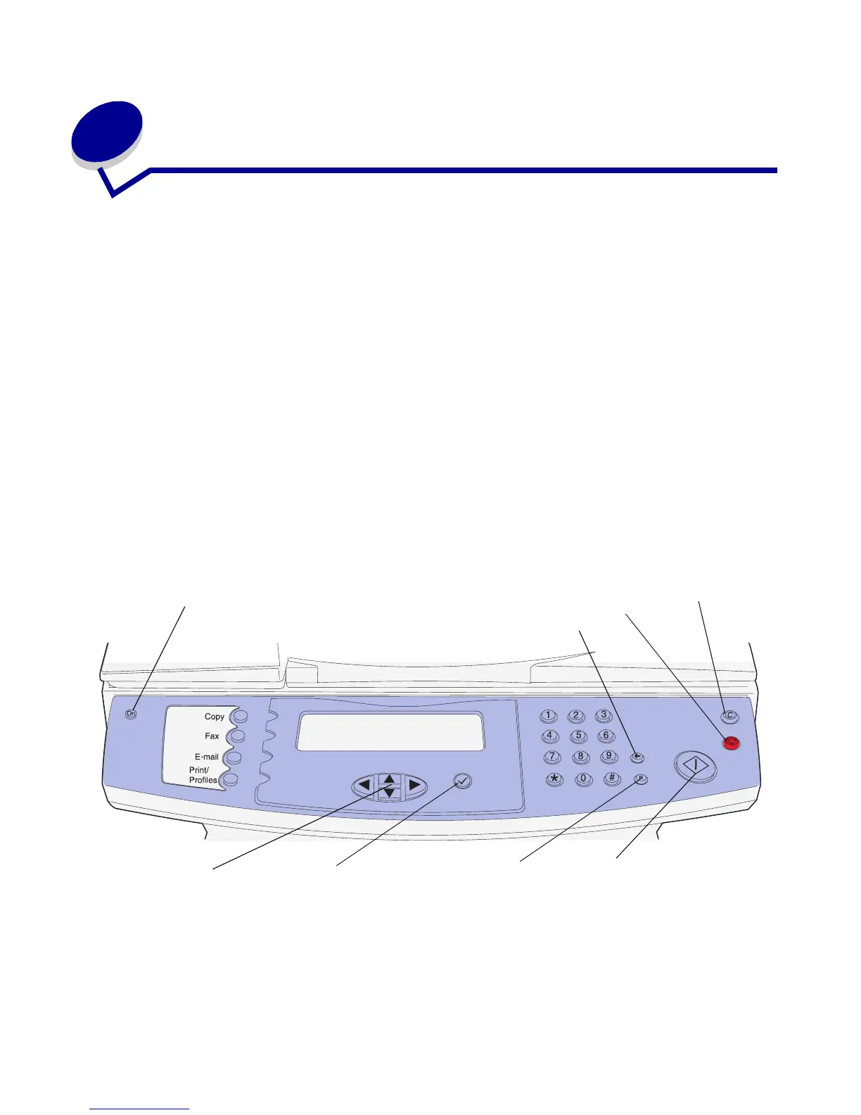 • Four buttons that light up when pressed—Copy, Fax, E-mail, and Print/Profiles