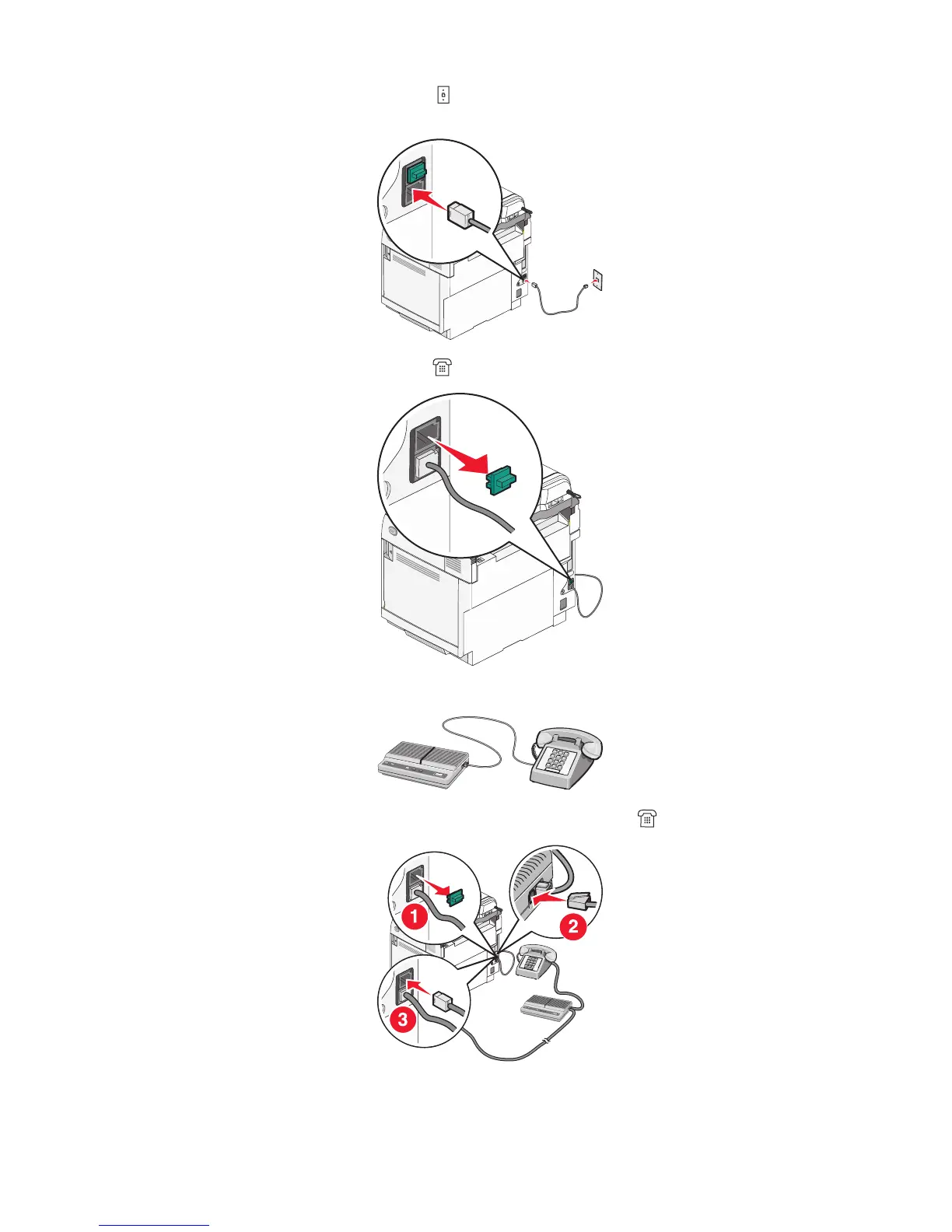 5 Connect a third telephone cord from the answering machine to the EXT port of the printer.