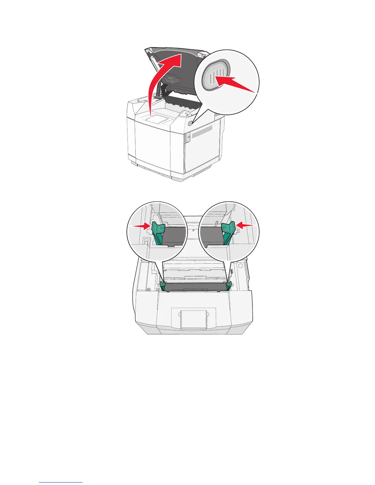 5 Push the latches toward each other to release the photodeveloper cartridge.