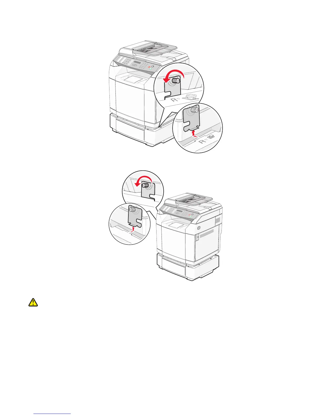 CAUTION: The printer weighs 35 kg (77 lb), and requires at least three people to lift it safely. Use the handholds