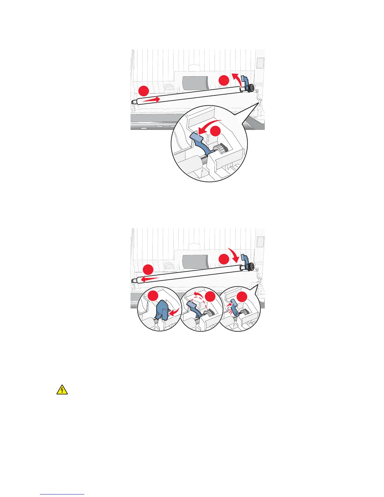 5 Reinstall the dry white roller, push the roller lever gently to the left, and then snap it into place.