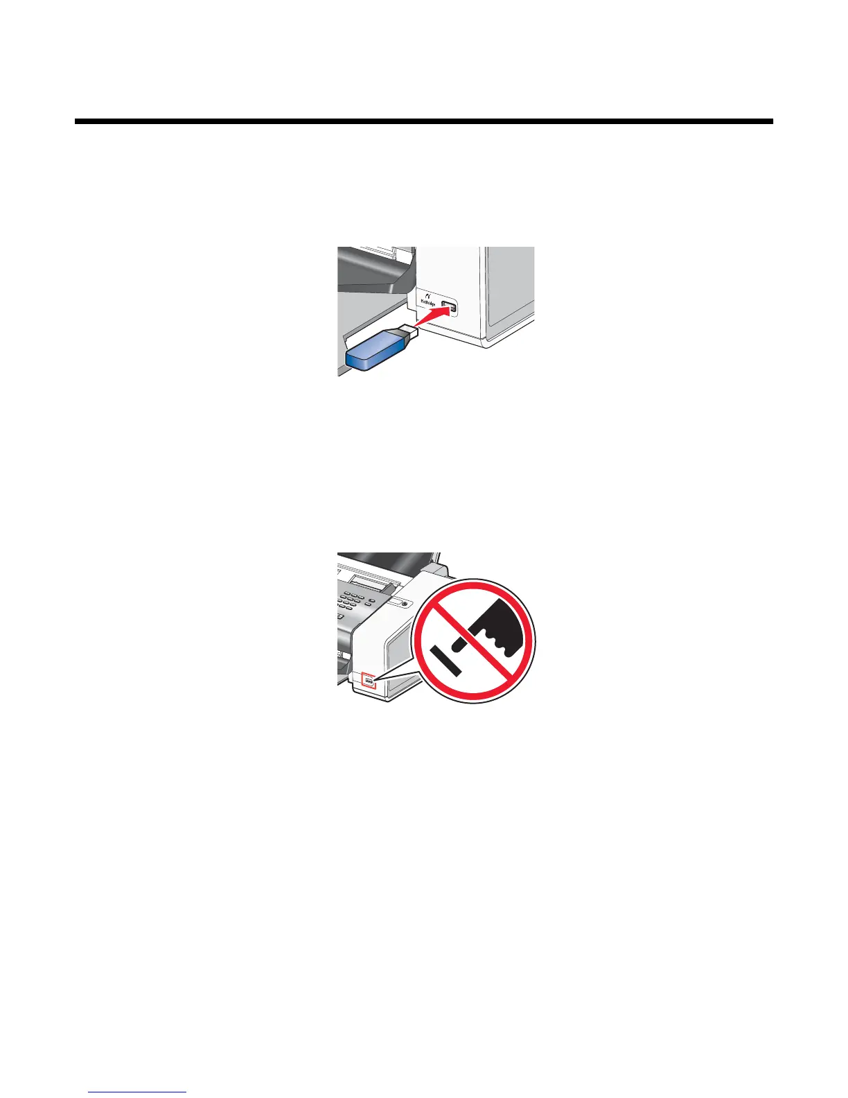 1 Insert the flash drive into the PictBridge port on the front of the printer.