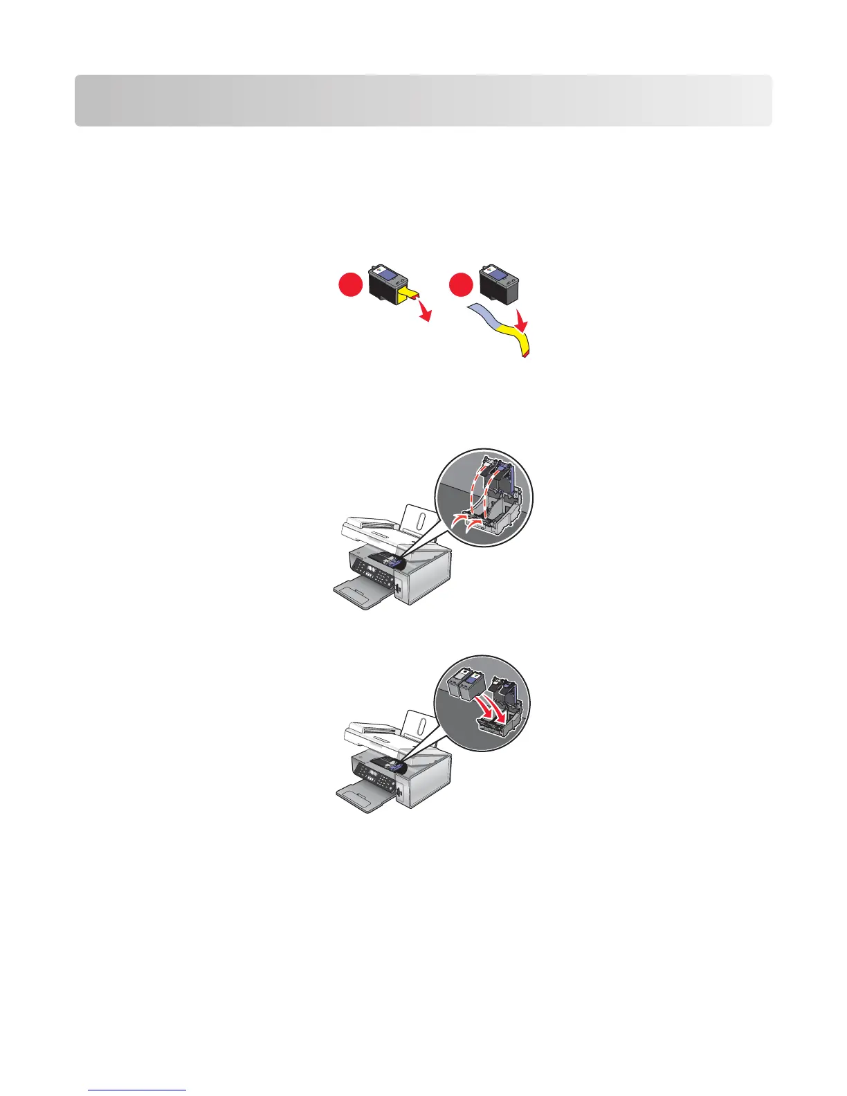 1 If you are installing new print cartridges, remove the sticker and tape from the back and bottom of the cartridges.