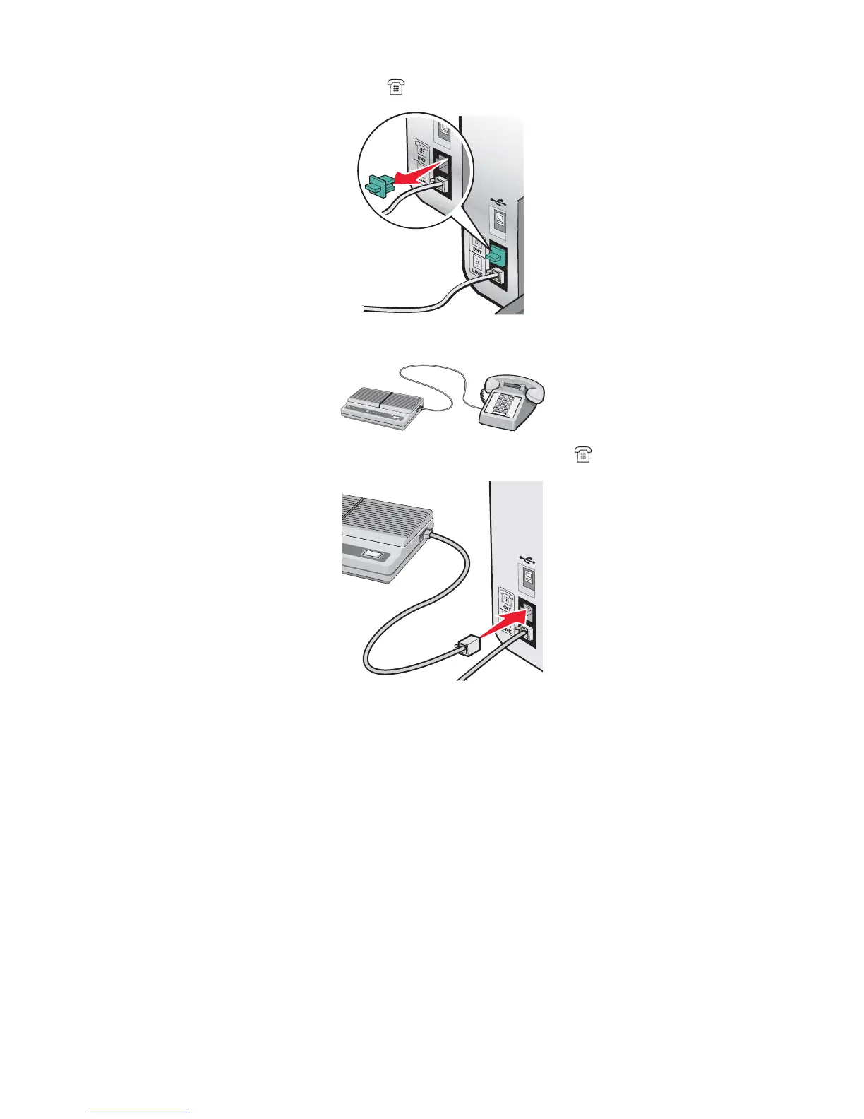 5 Connect a third telephone cord from the answering machine to the EXT port of the printer.