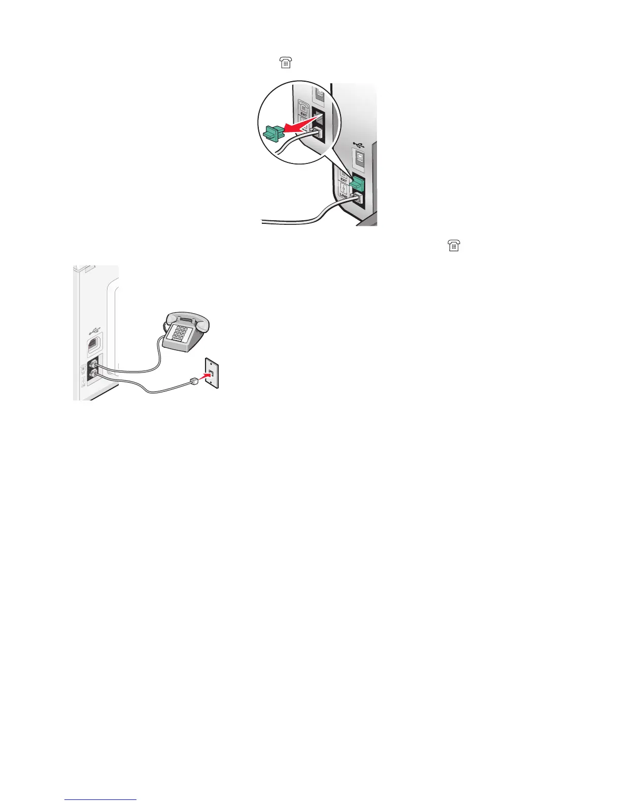 4 Connect the other telephone cord to a telephone, and then plug it into the EXT port of the printer.