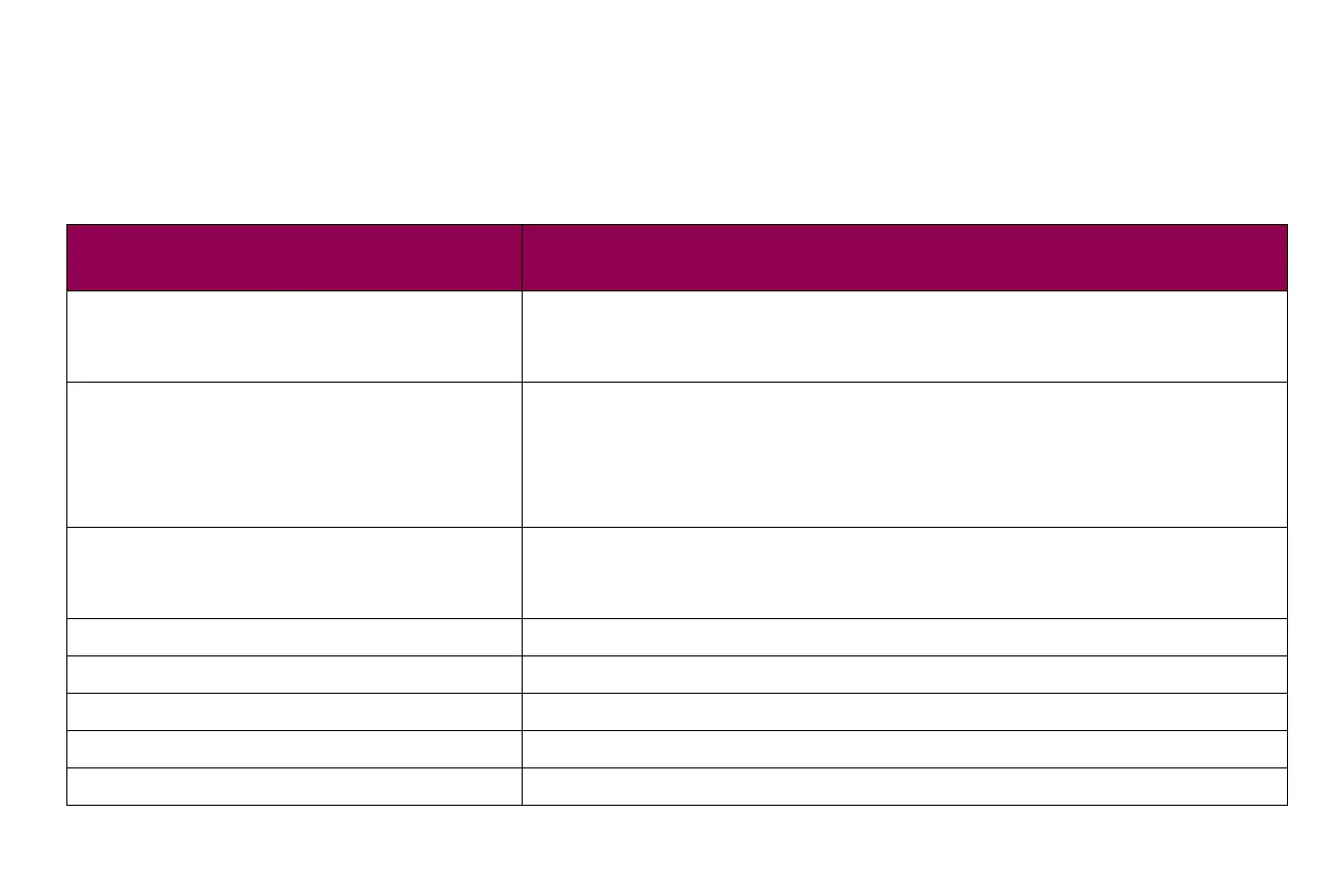 The following table lists menu options and sub-menus found under