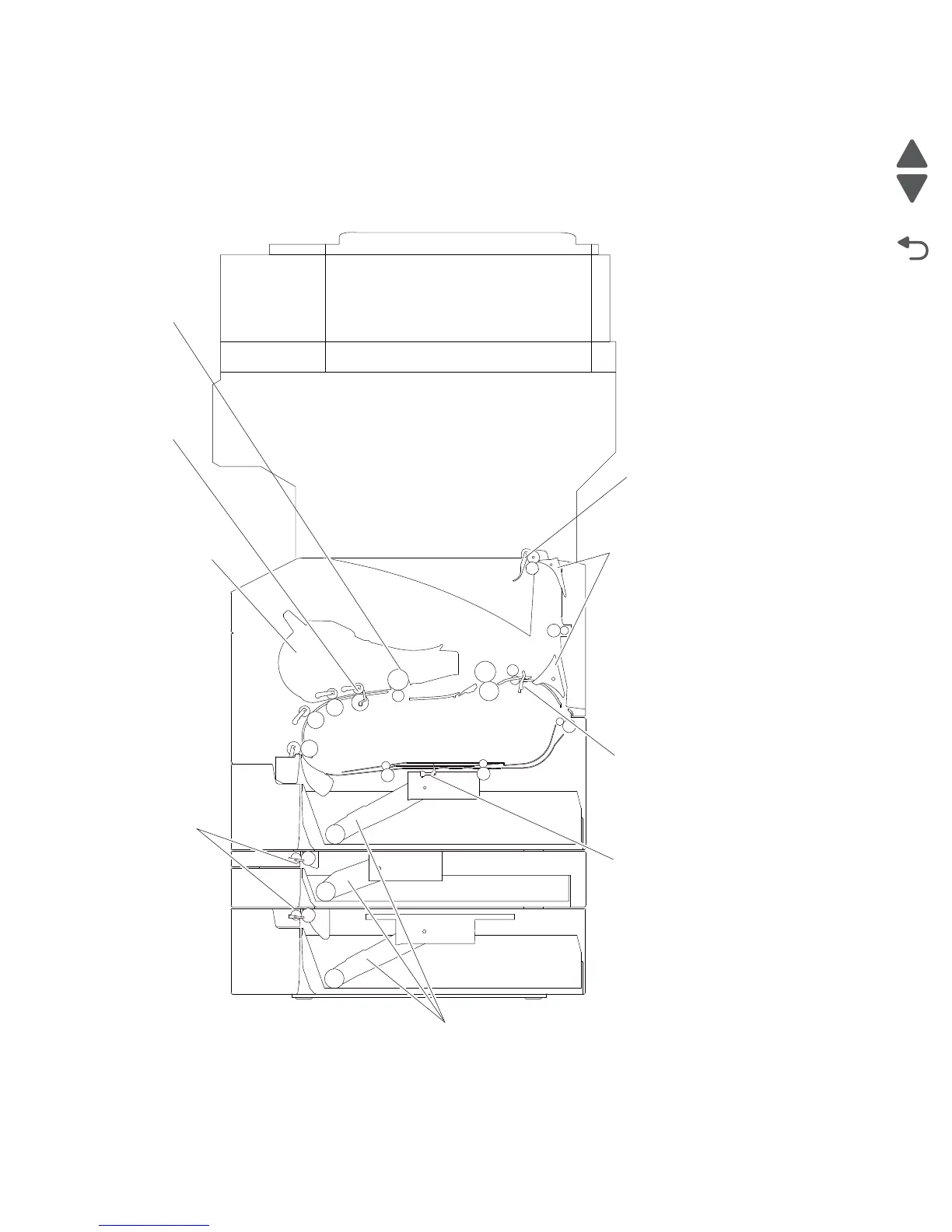 Models X651, X652, X654 and X656 paper path rolls and sensors