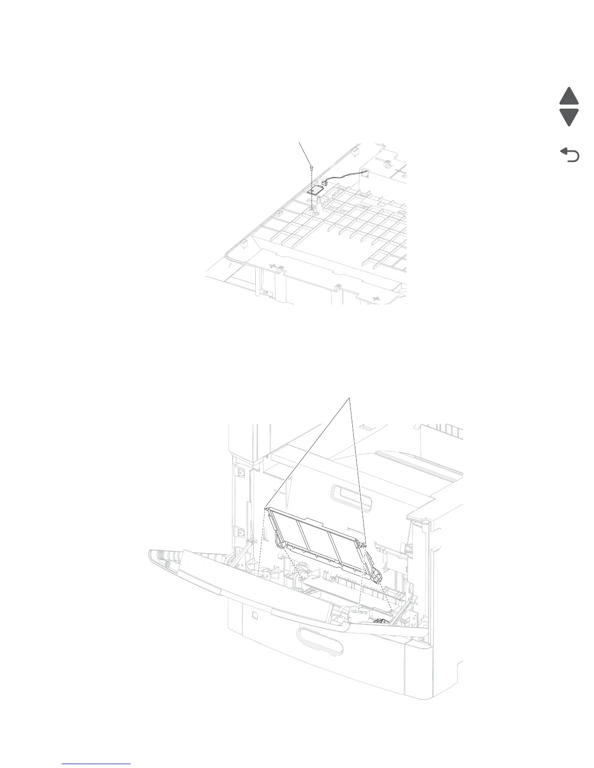 Standard output bin LED assembly removal (models X651, X652, X654, and X656)