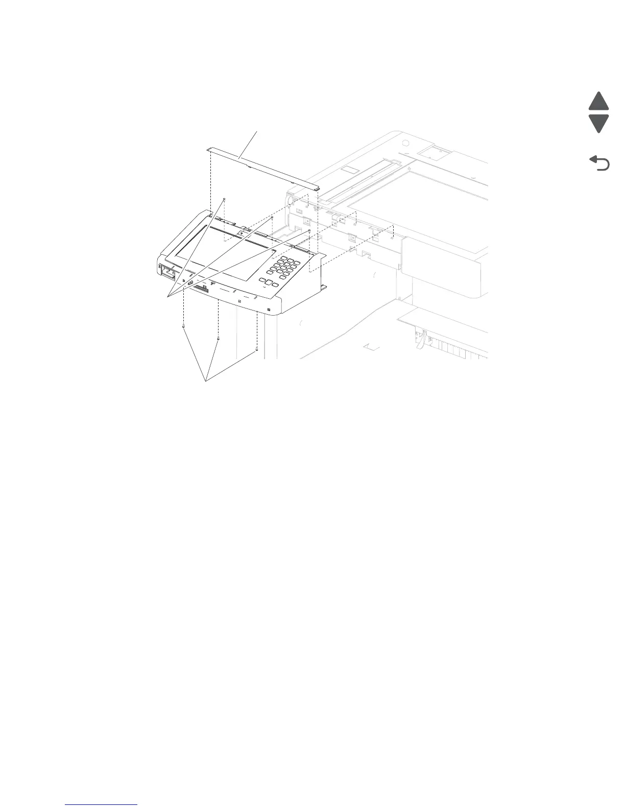 7. Rotate the operator panel assembly upside down, and remove the three screws (E).