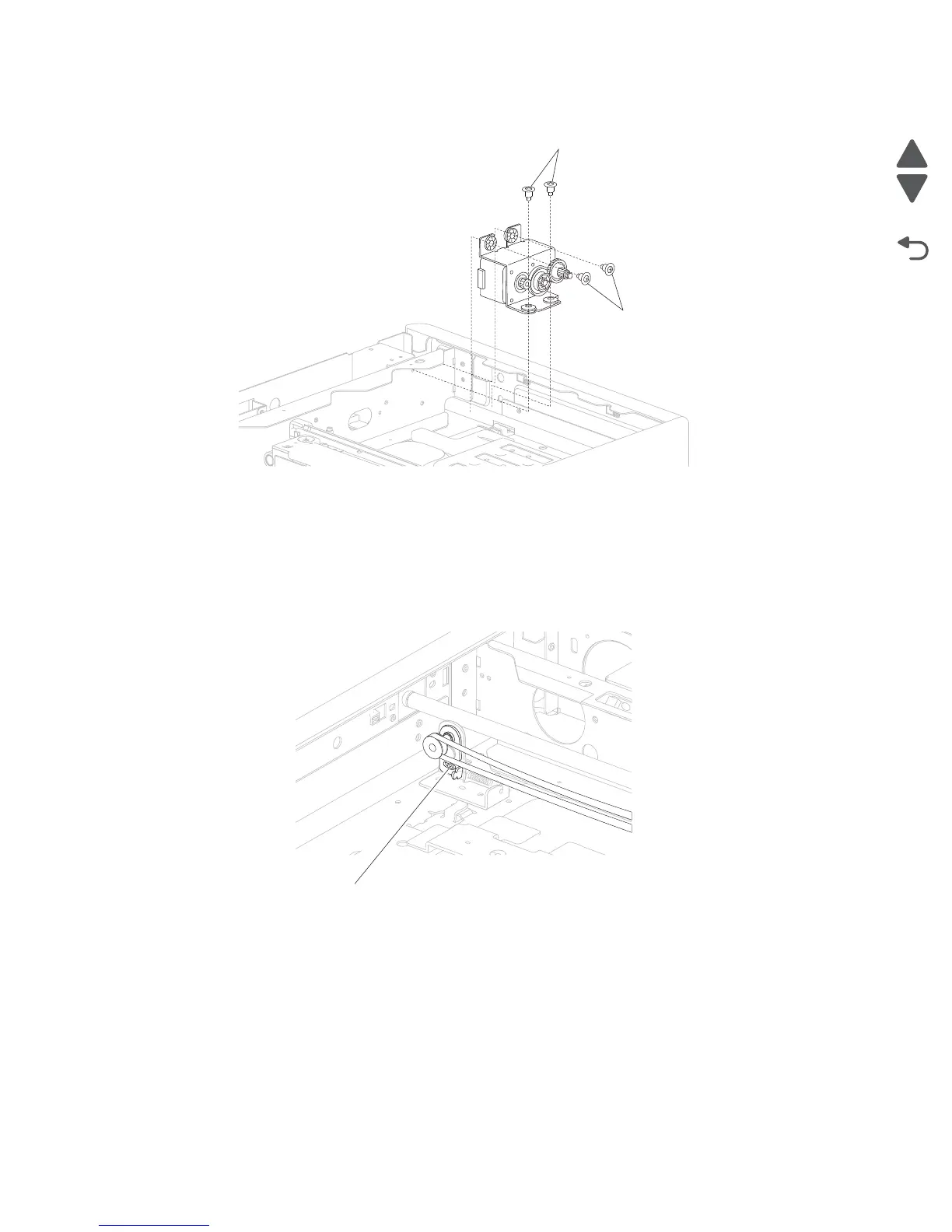 5. Remove the carriage belt from the carriage belt tension assembly and the drive motor assembly.