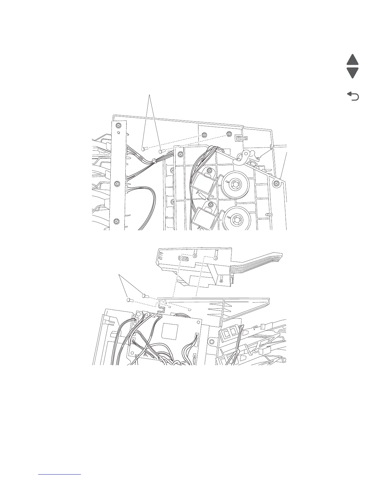 1. Remove the 4-bin mailbox assembly left cover. See “4-bin mailbox assembly left cover removal” on