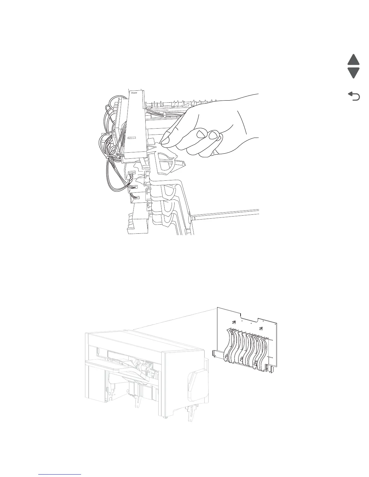 1. Remove the 4-bin mailbox assembly left cover. See “4-bin mailbox assembly left cover removal” on