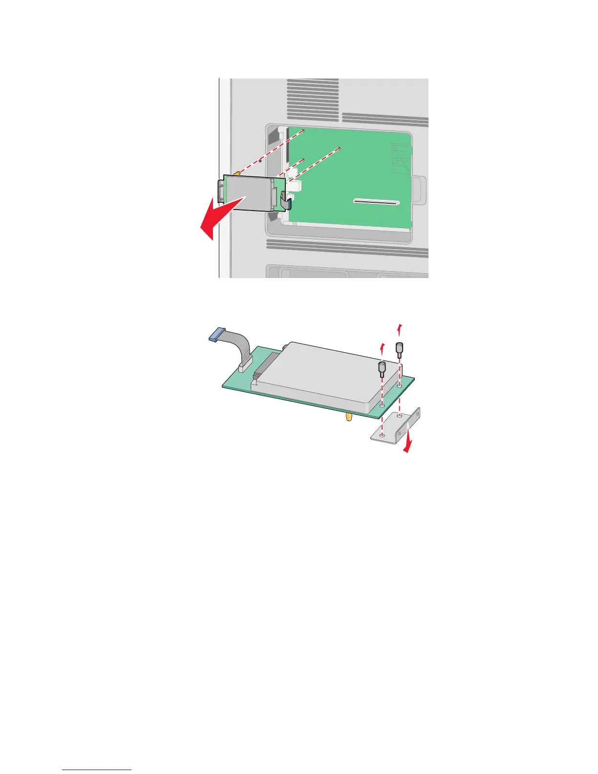 c Remove the printer hard disk by pulling it upward to unseat the standoffs.
