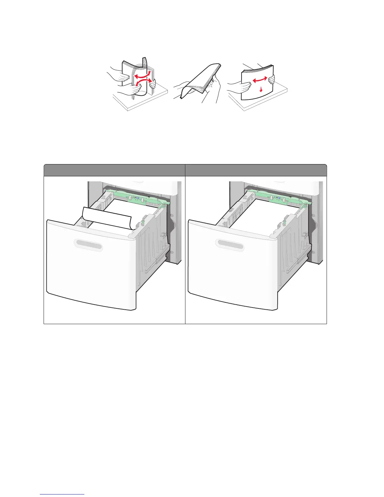 5 Flex the sheets back and forth to loosen them, and then fan them. Do not fold or crease the paper. Straighten the
