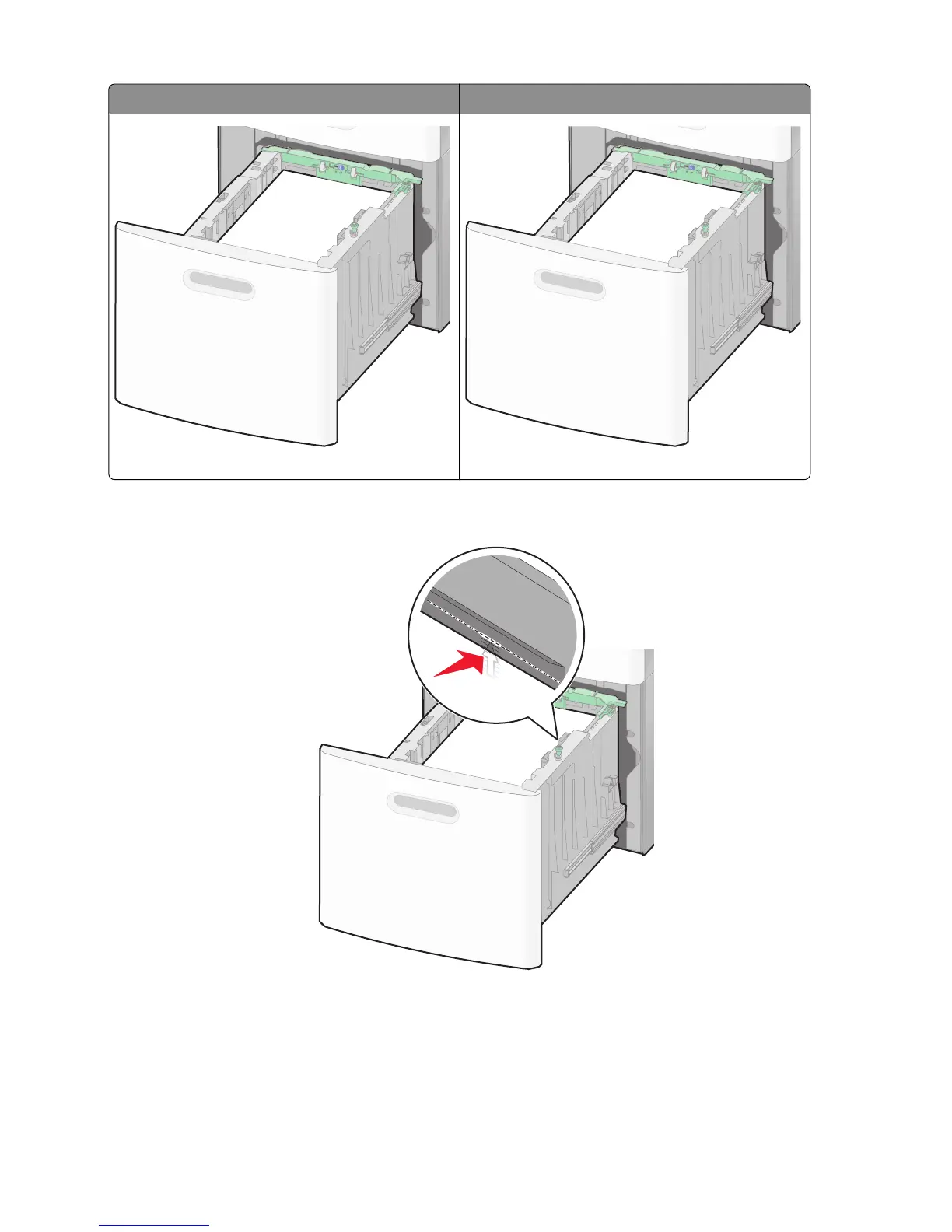 Note: Notice the maximum fill line on the side of the tray which indicates the maximum height for loading paper.