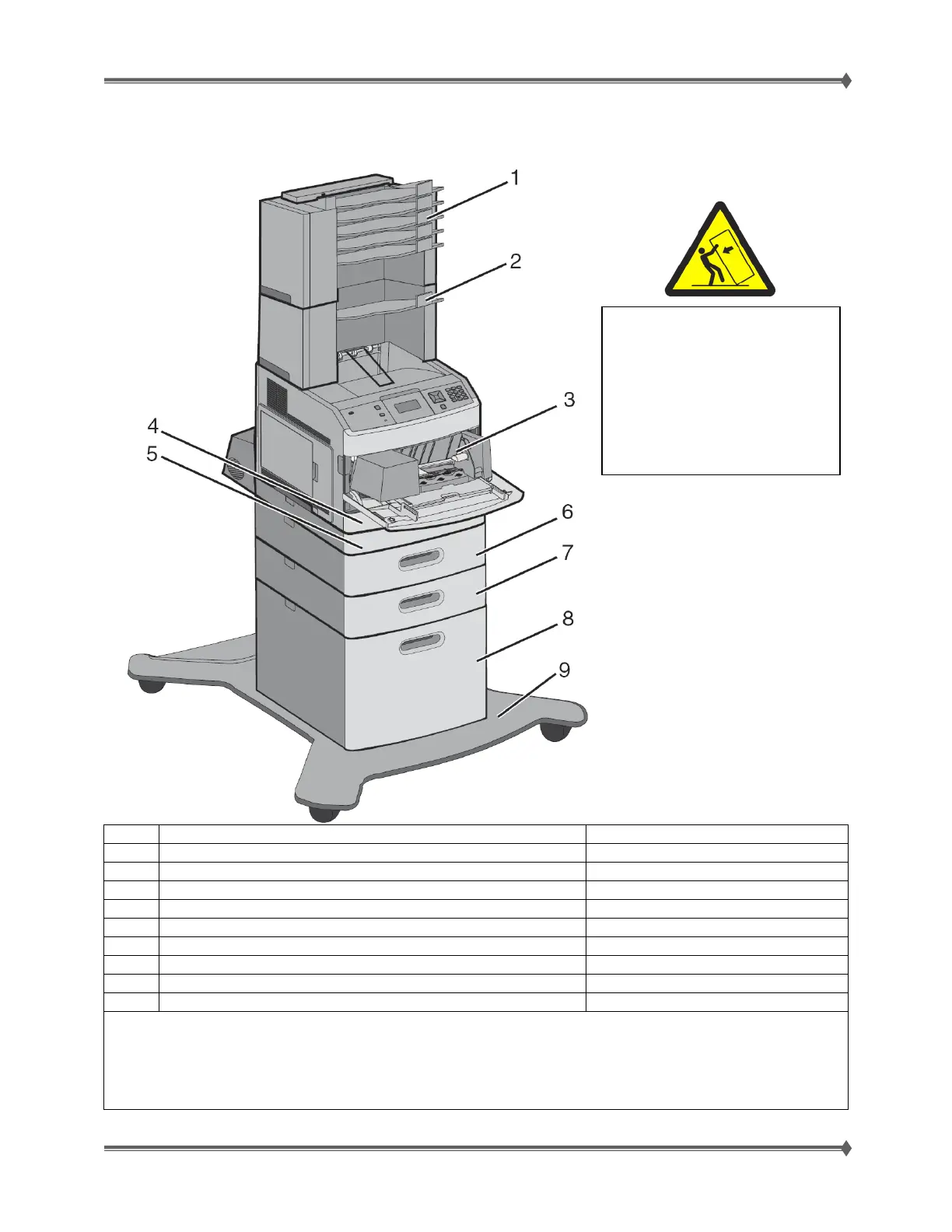 3 The printer supports up to three output expander units, or one output expander combined with one 5-bin mailbox,
