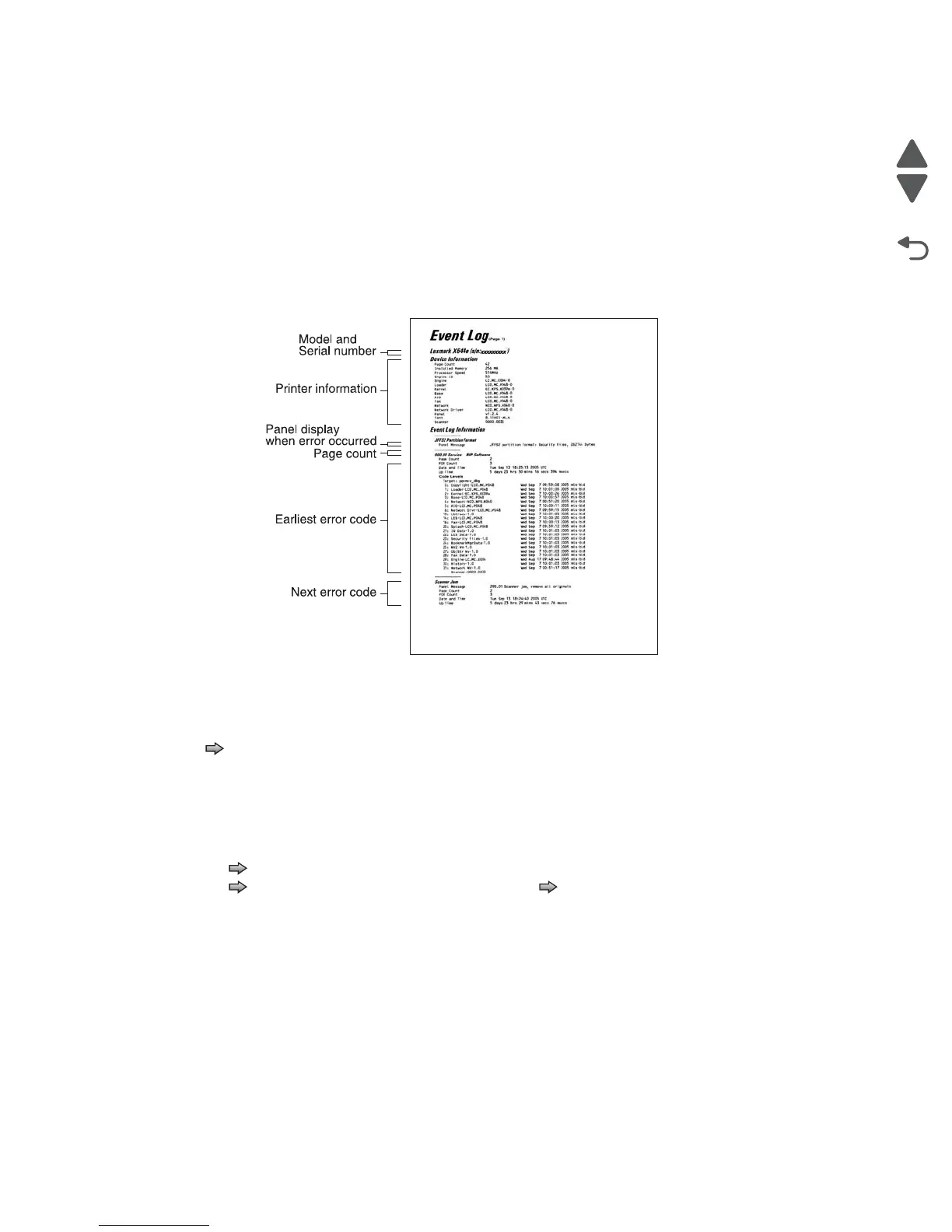 The printed event log can be faxed to Lexmark or your next level of support for verification or diagnosis.