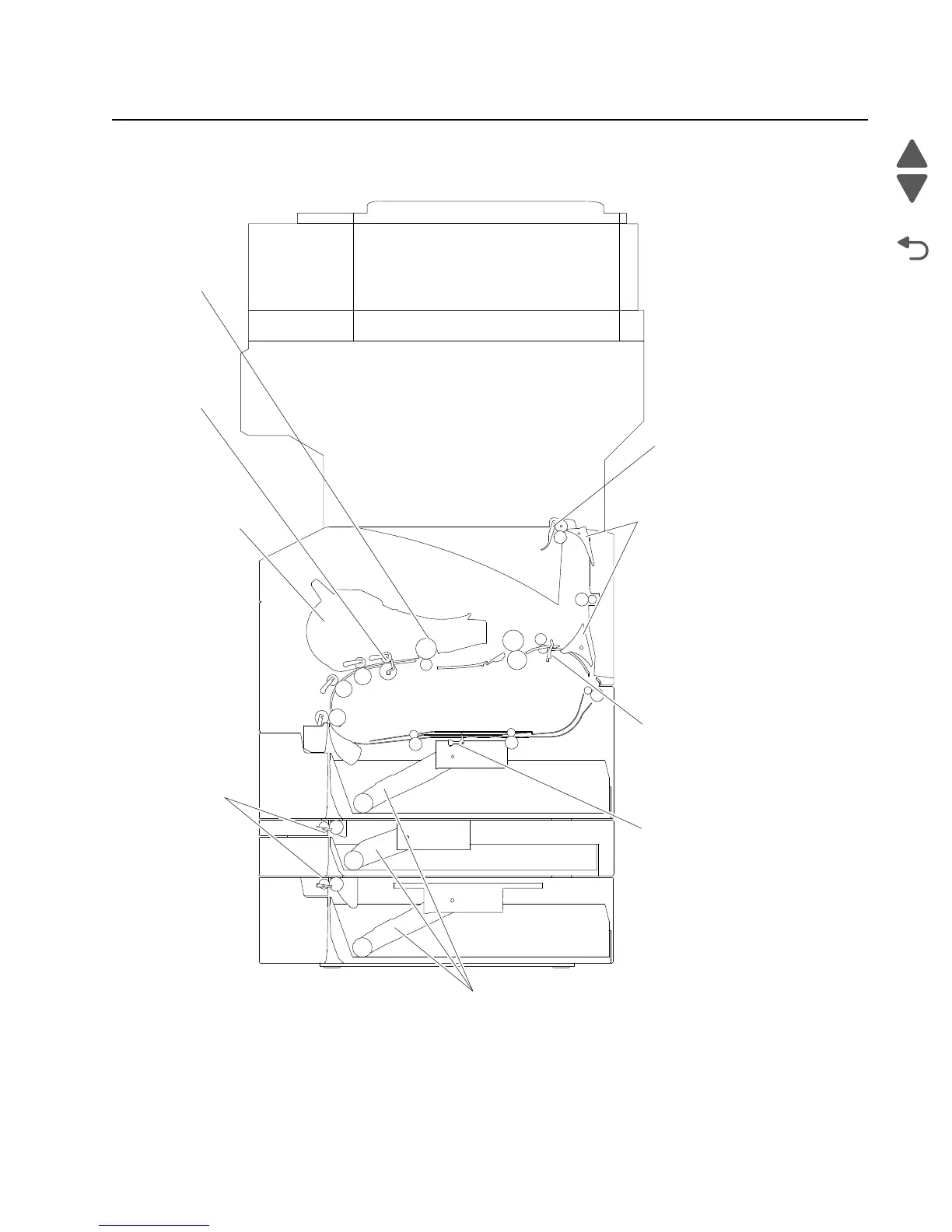 Models X651, X652, X654 and X656 paper path rolls and sensors