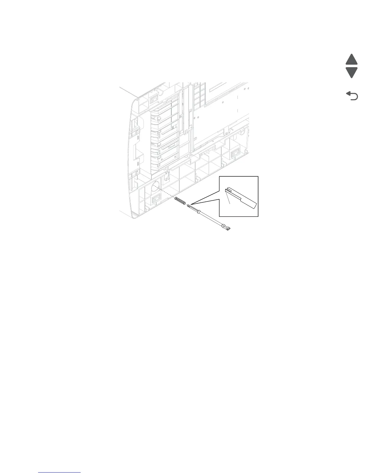 Replacement Warning: When replacing the option drive shaft, ensure that the plastic hook (A) is not
