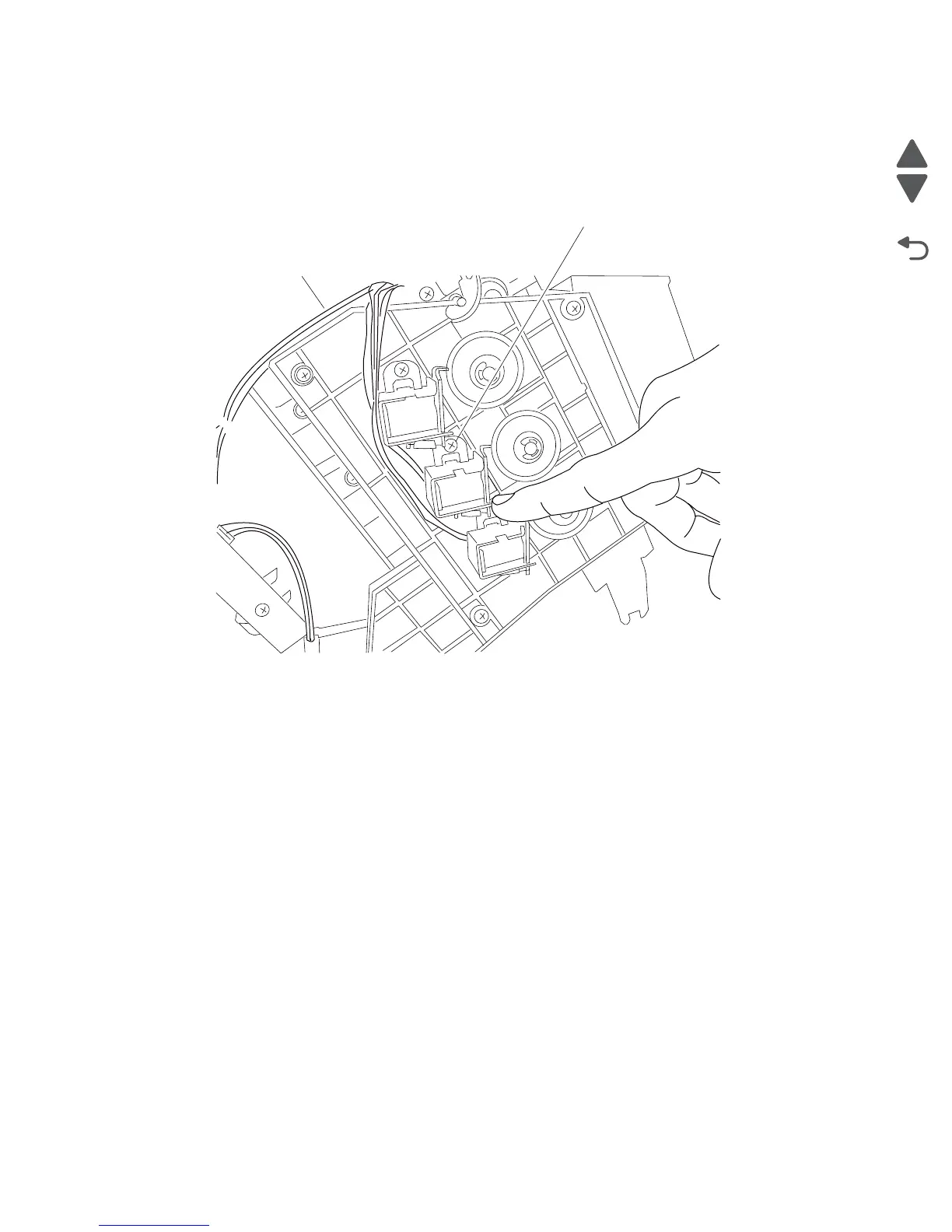 5. Pull the deflector gate solenoid and harness from the 4-bin mailbox assembly.