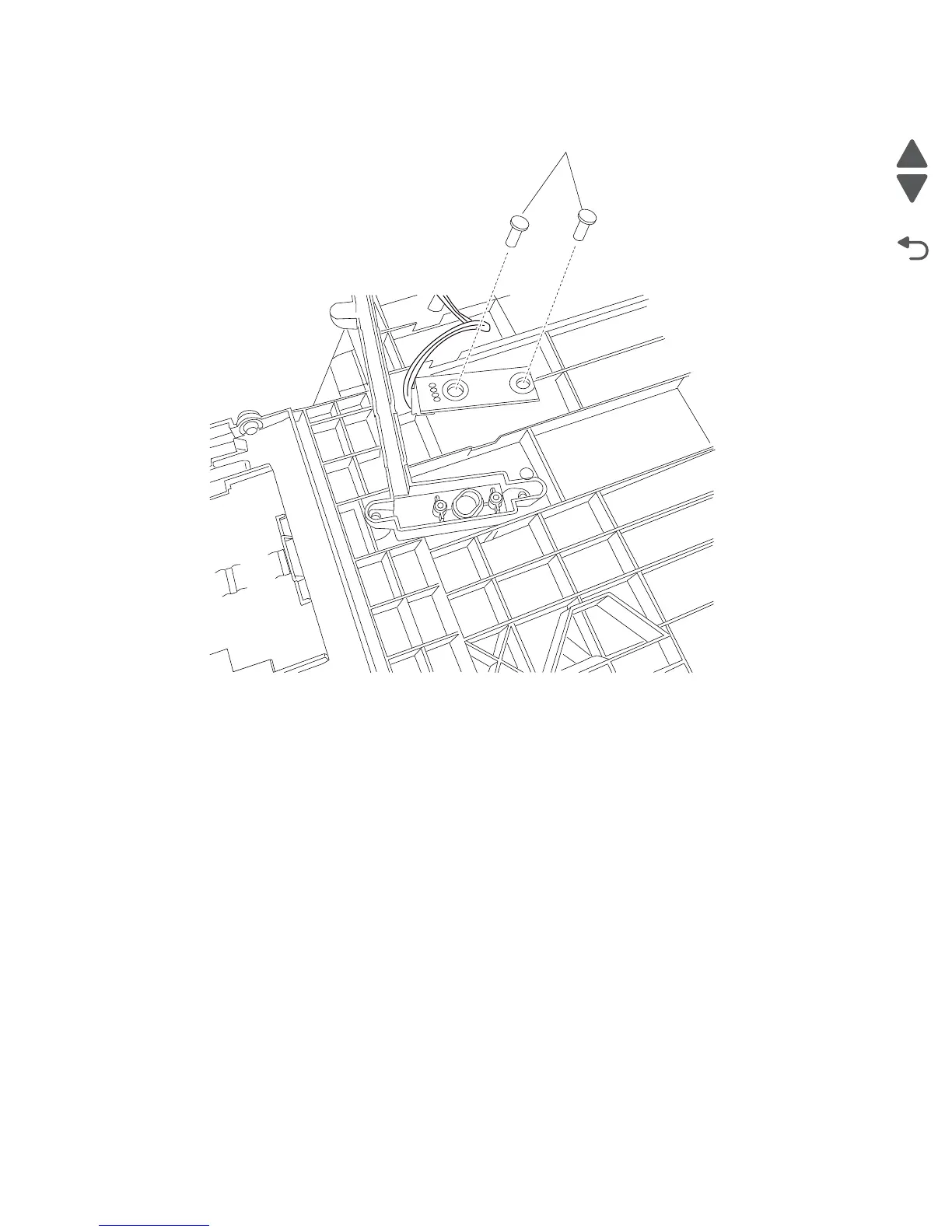 3. Remove the two screws (B) securing the output bin LED to the bracket and remove the output bin LED.