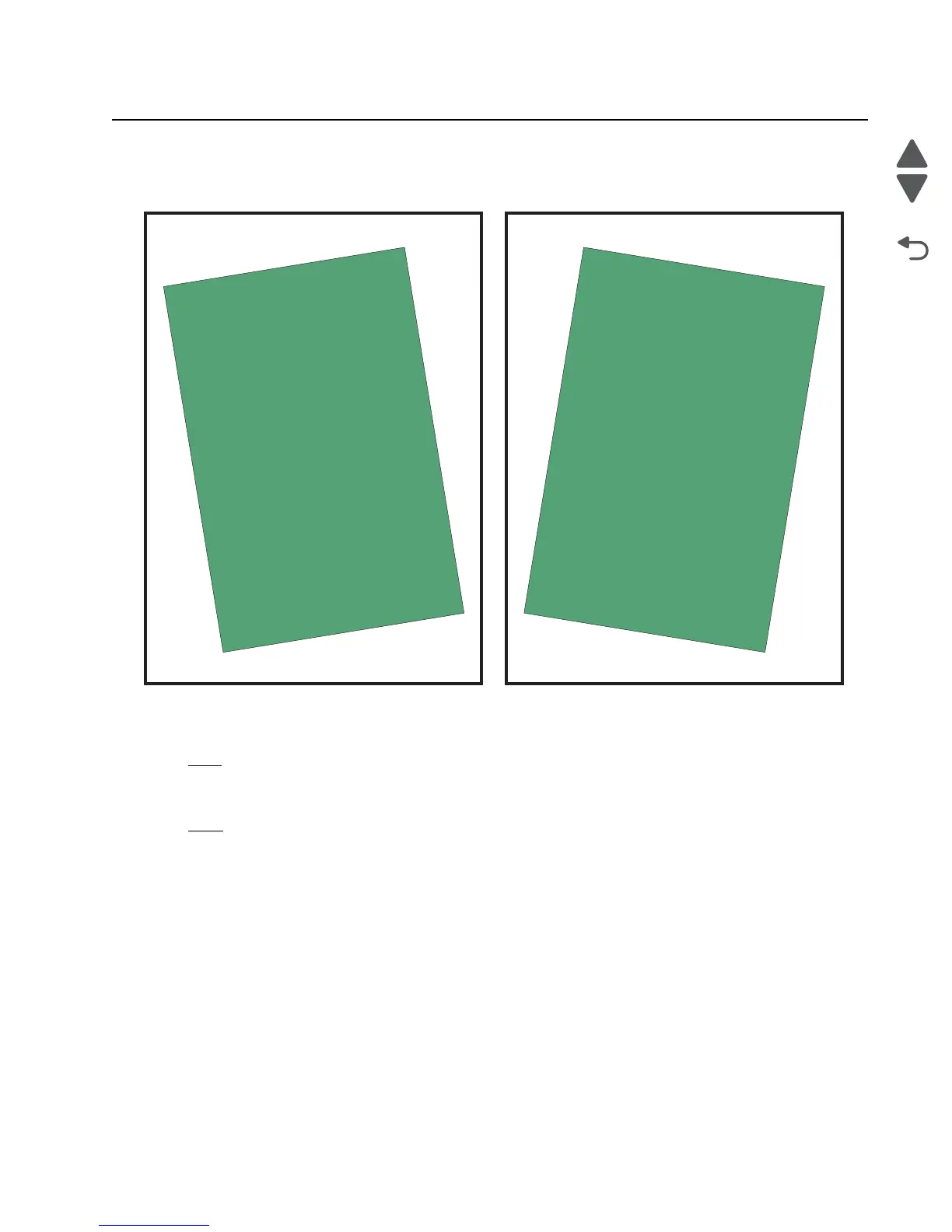 For flatbed scanner and ADF skew adjustment, refer to the examples below to identify if “negative” or “positive”