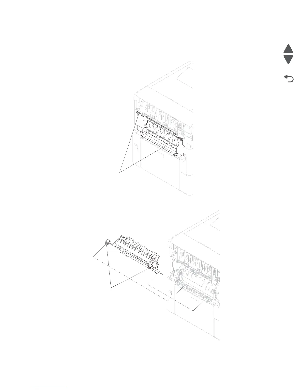 2. Press the two tabs (A) on the fuser access door assembly, and detach it from the machine.
