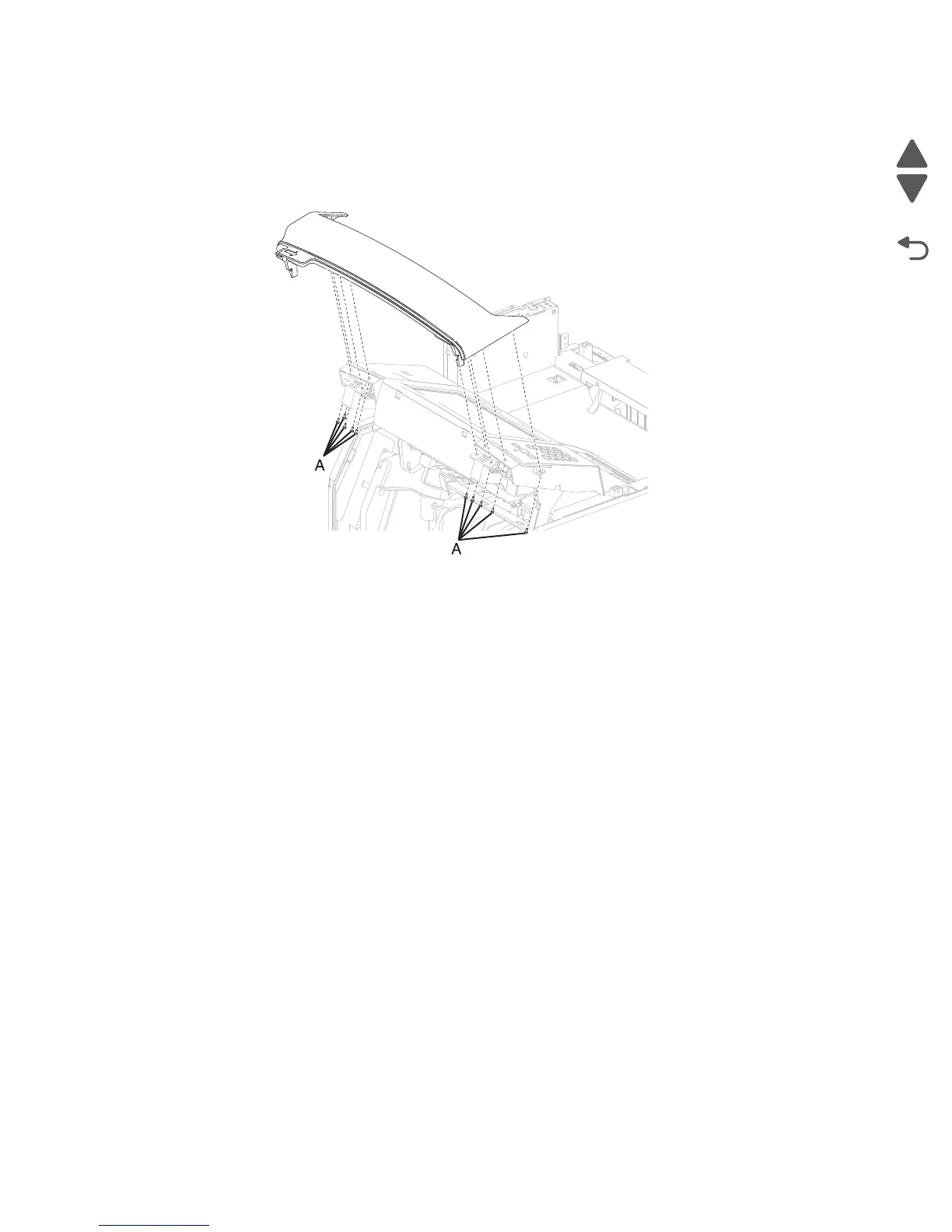 2. Remove the ten screws (A) securing the operator panel cover latch assembly to the operator panel cover