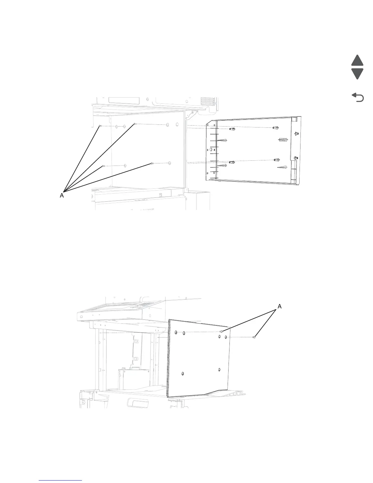 4. Remove the two screws (A) securing the scanner support inner cover, left.