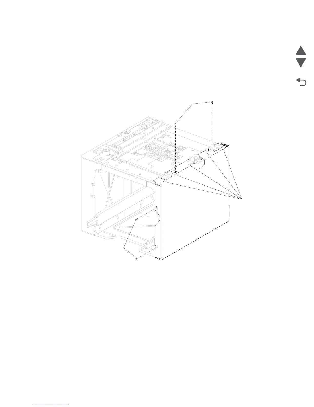 1. Remove the High capacity input tray (HCIT) cover, rear. See “High capacity input tray (HCIT) cover, rear